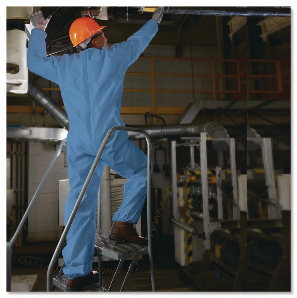 KleenGuard 45326 A65 Zipper Front Flame Resistant Coveralls with Hood/Elastic Wrists and Ankles – 3X-Large/Blue (21/Carton)