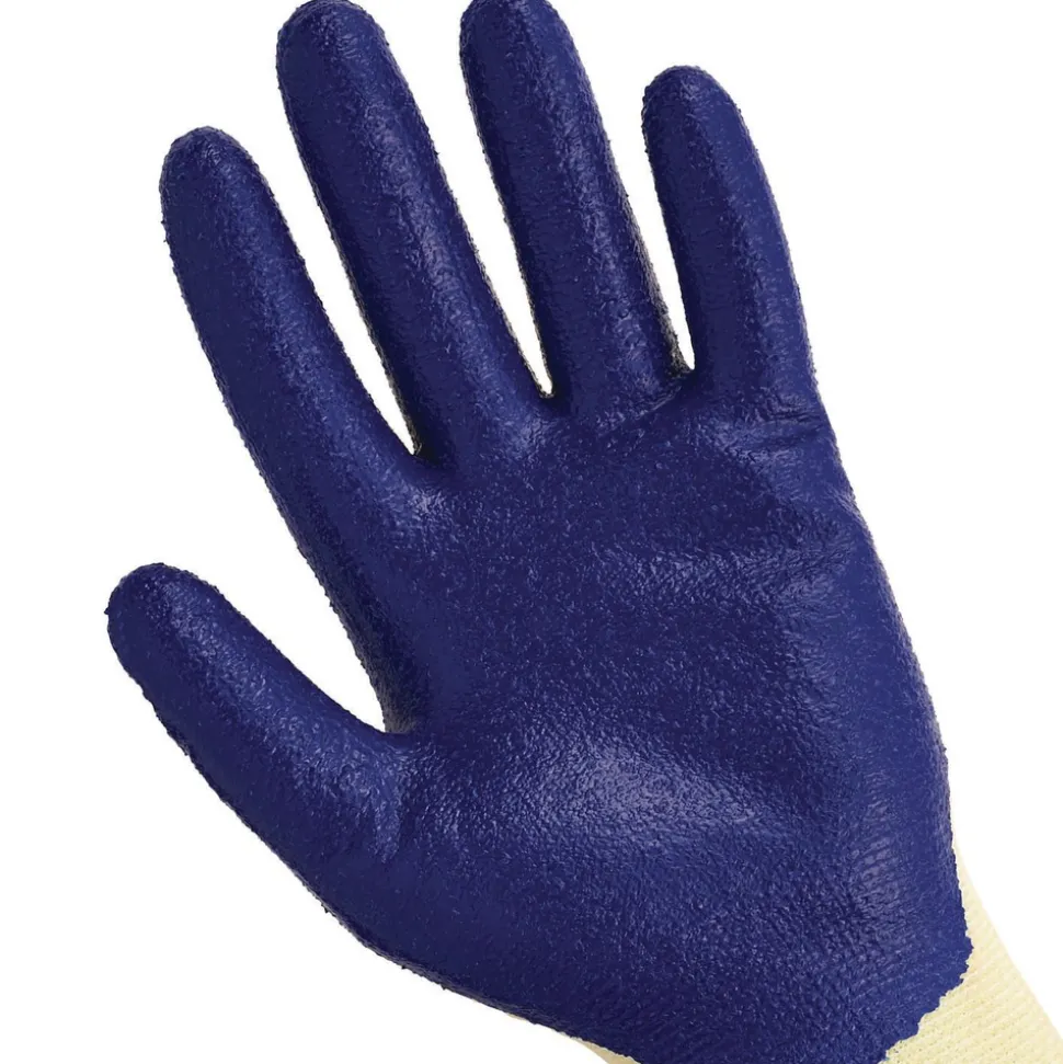 (12 Pairs/Pack) G60 Nitrile Coated Cut Resistant Gloves – Large, Blue/Yellow – 98232