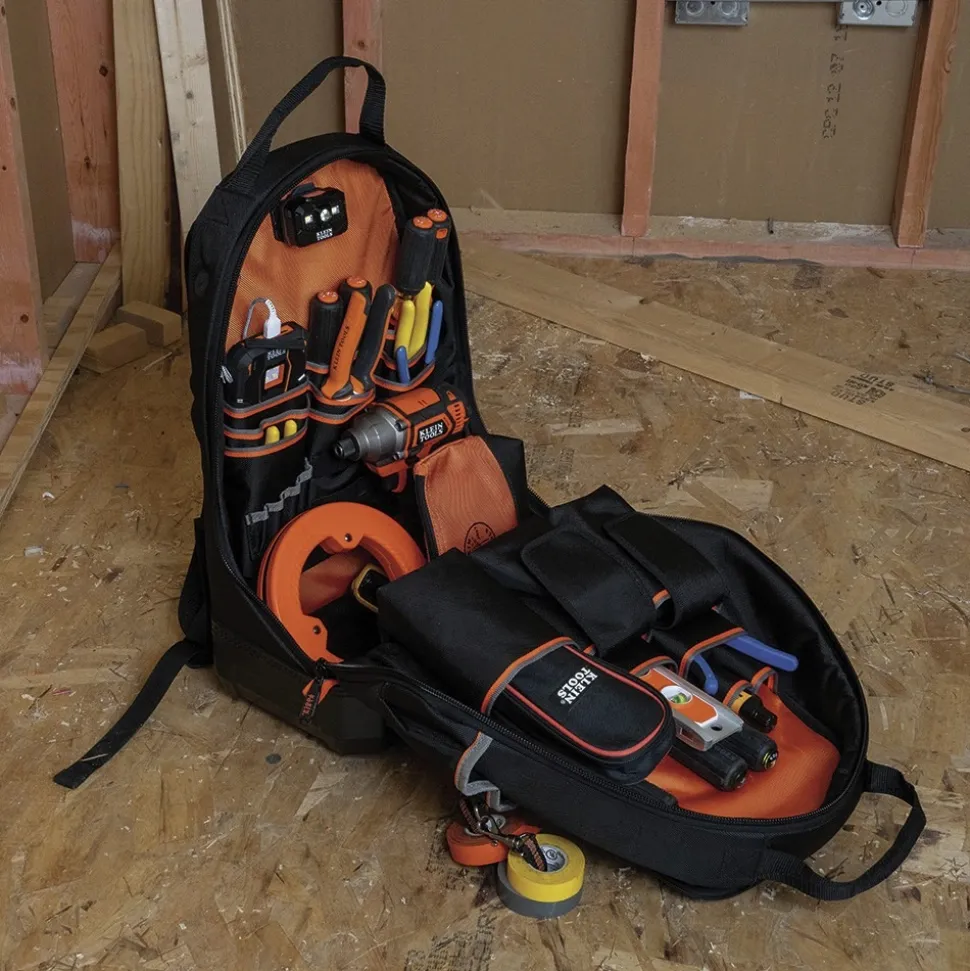 Klein Tools’ Electrician’s Backpack features 32 pockets for plenty of tool storage, including a hard, molded front pocket for safety glasses and a front zipper pocket to store loose parts. Built-in technology to seamlessly connect to Klein’s MODbox Mobile Workstation and other MODbox components to make a custom mobile workstation.