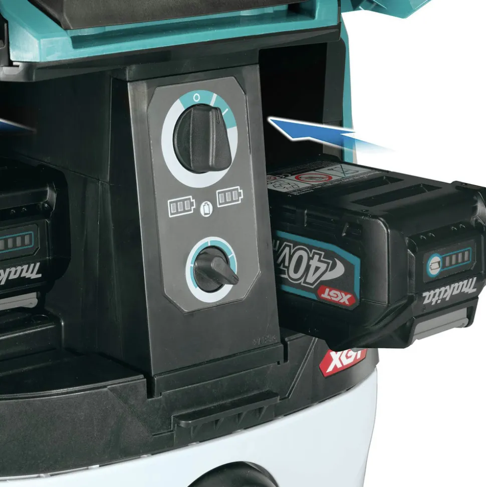 There is increasing awareness of dust extraction on job sites, and the 40V max X2 XGT Brushless 2.1 gal Wet/Dry Dust Extractor Vacuum is a cordless solution for a range of applications. It functions in both wet and dry applications, with 148 CFM and 92 in. Water lift for efficient performance. The GCV01 is powered by one 40V XGT battery, but the 2 Battery bay will accommodate a second 40V Battery for extended run time. It has a variable speed control dial for power run time and management. The vacuum includes a 1-1/4 in. x 5-1/2 in. anti-static hose, crevice nozzle with on-board storage, and an aluminum telescoping wand that adjusts to user height and collapses for storage. The wand includes a universal floor nozzle for performance in both janitorial-sanitation and construction job site applications. Convenience features include four rotating wheels for 360 Degree mobility, rear casters with locking levers, and a large rubber bumper to help prevent damage to the work environment. Quick-release metal latches provide easy access for the removal and disposal of debris. It features IPX4 Weather-resistant construction for durability and long life. XGT is a system of equipment, tools, batteries, and chargers utilizing 40V max Lithium-Ion batteries. XGT is engineered to deliver high power to take on high-demand applications, allowing users to completely transition to a cordless job site. XGT is equipped with advanced brushless motor engineering, intelligent digital communication, and superior durability features to outpower, outsmart and outlast the rest.