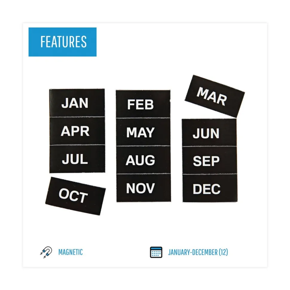 (12/Pack) 2 in. x 1 in. Months of Year Interchangeable Magnetic Board Accessories – Black/White – FM1108