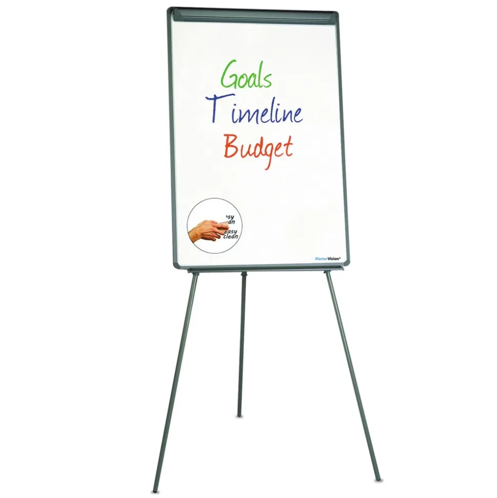 MasterVision EA2300045 22.5 in. x 42 in. Basic Tripod Melamine Presentation Easel – White/Black