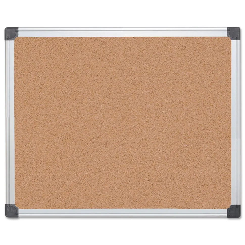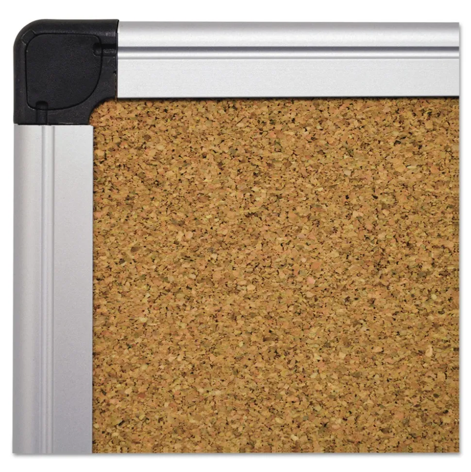 The MasterVision Maya Cork Bulletin Board is an economic solution that delivers effective posting and versatility for office and facility communications. Designed for commercial applications, the Maya bulletin board’s self-healing surface never shows pin holes and is made from renewable cork; making it both durable and resilient. Framed in sturdy heavy gauge aluminum, it has an easy 4-corner mounting system that can be positioned either vertically or horizontally, offering versatility when reconfiguring a workplace or where wall space is limited.