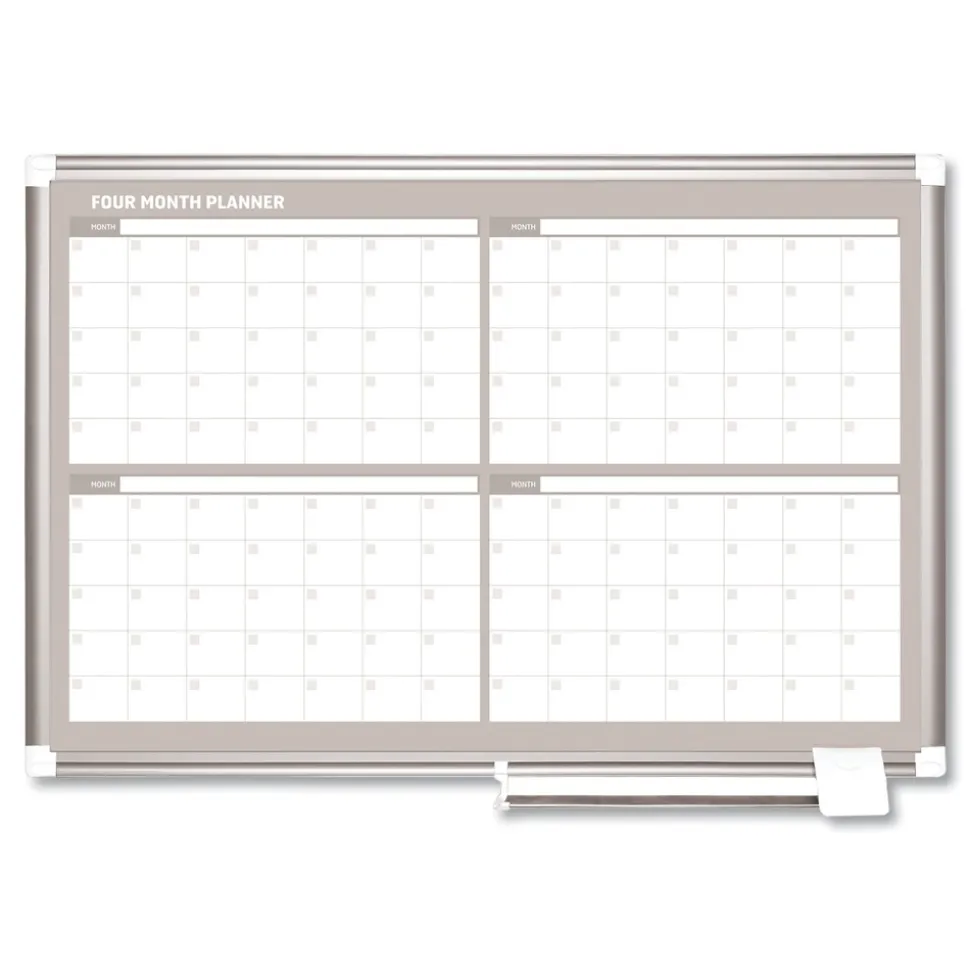 MasterVision GA03105830 36 in. x 24 in. 4-Month Planning/Scheduling Magnetic Dry Erase Calendar Board – White Surface, Satin Aluminum Frame