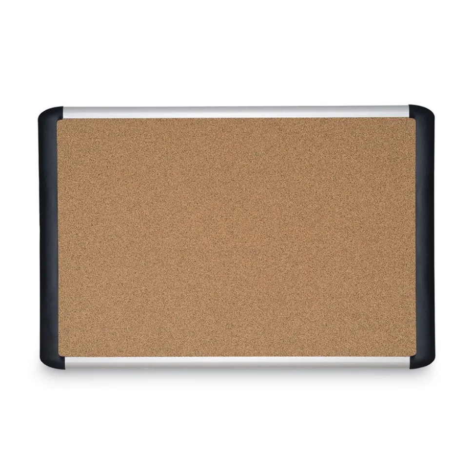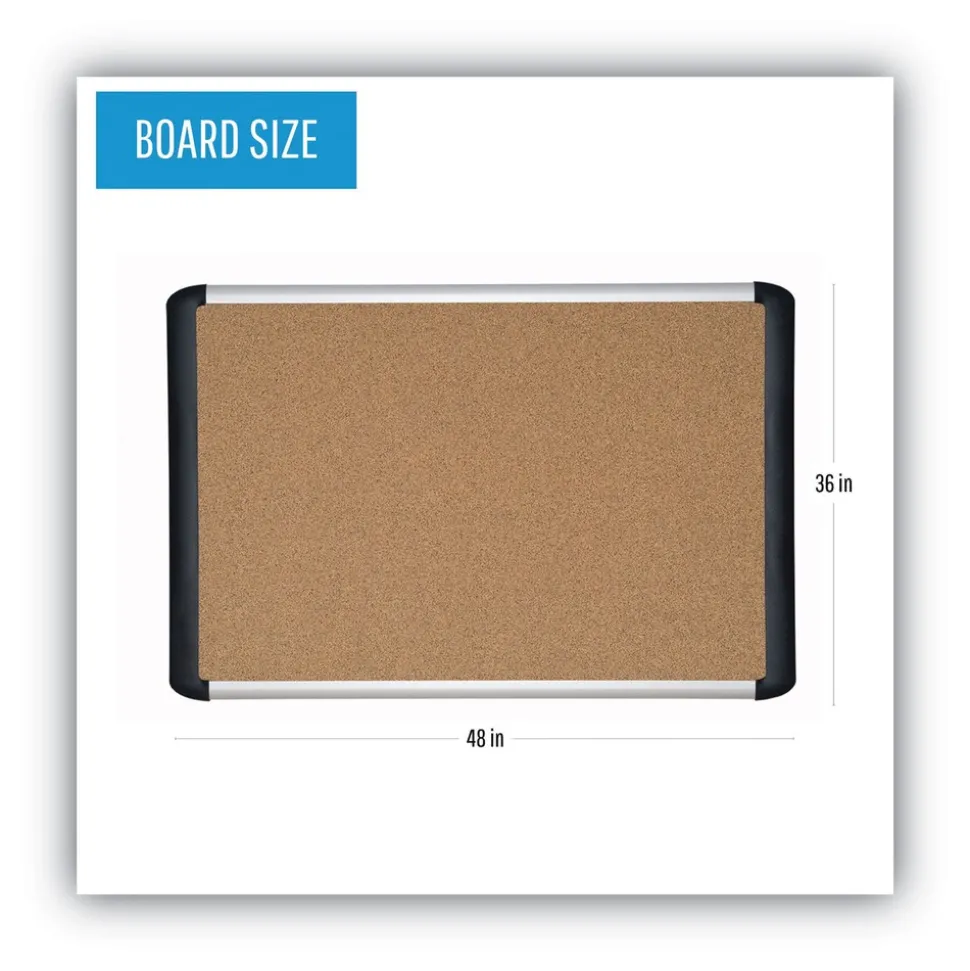 48 in. x 36 in. Tech Cork Board – Tan Surface, Silver/Black Aluminum Frame – MVI050501