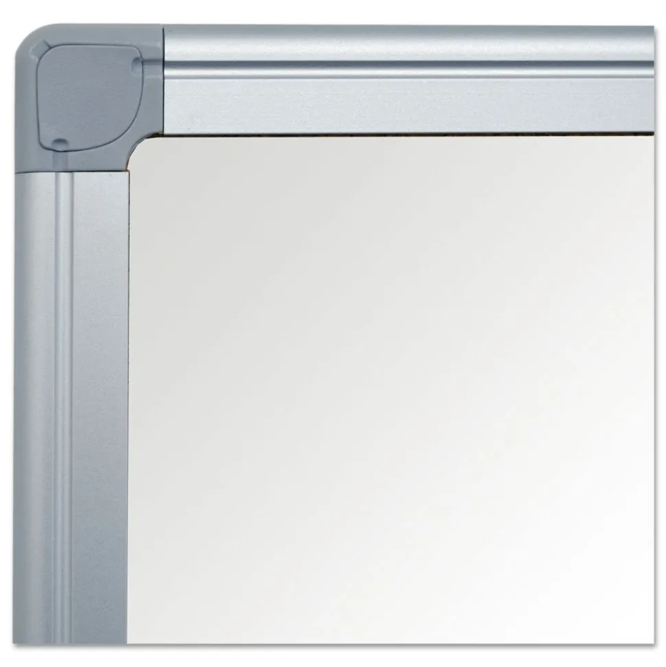 The Maya Magnetic Steel Dry-erase Board features a durable whiteboard surface and high-quality appearance through years of frequent use. Magnetic surface allows you to instantly post messages or attach your magnetic accessories. The professional Maya aluminum frame includes a four-corner mounting system that can be positioned either vertically or horizontally to provide versatility when reconfiguring an office or where wall space is limited. The adjustable pen tray offers a convenient way to keep your writing utensils within quick reach. This dry-erase board is perfect for classrooms, offices, training environments, meeting rooms and more.