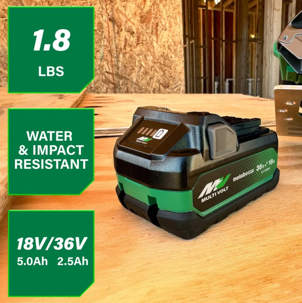 Metabo HPT 380083M 18V/36V MultiVolt 5 Ah/2.5 Ah Water and Impact Resistant Lithium-Ion Battery