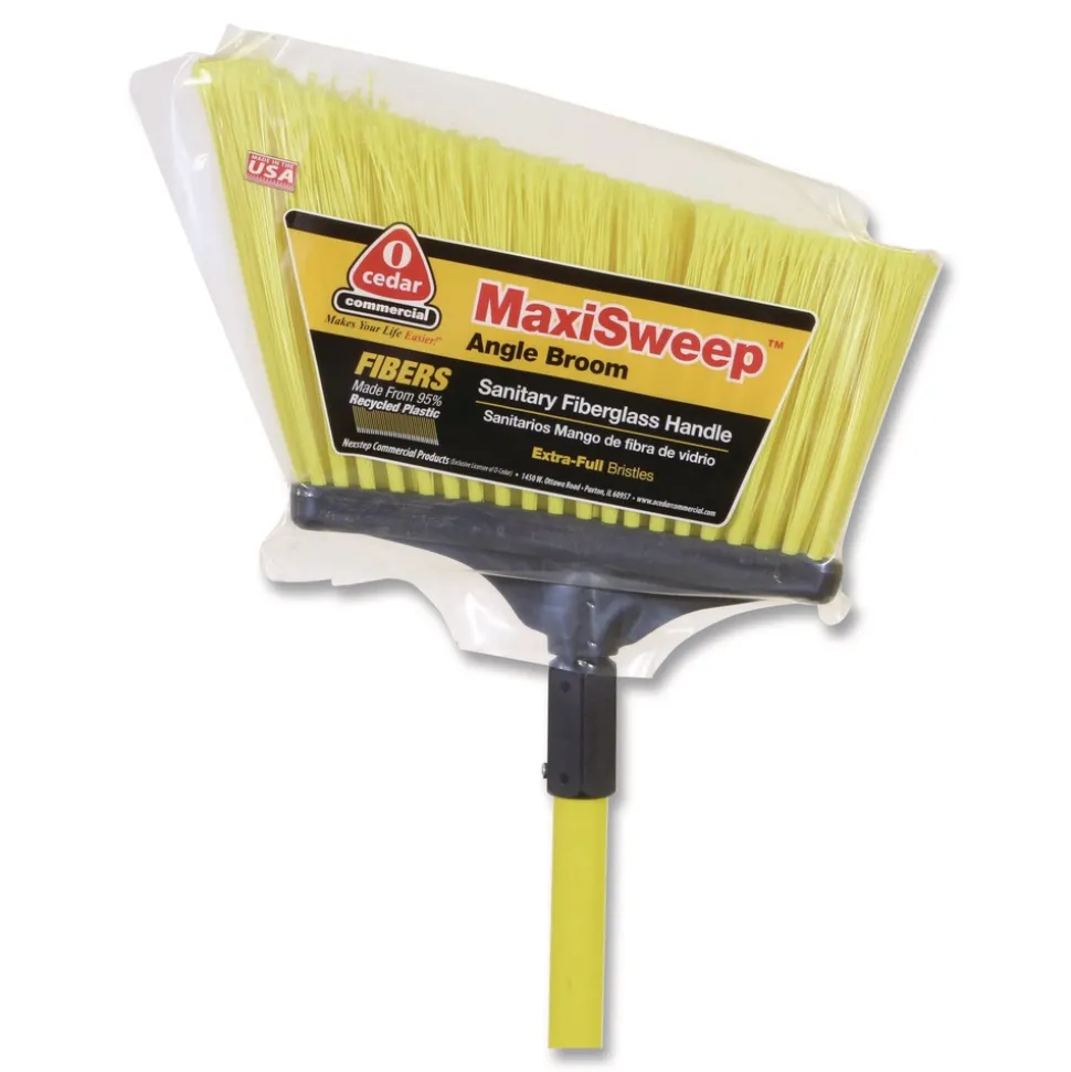 MaxiSweep Angle Broom with Fiberglass Handle feature fully washable, long-lasting synthetic bristles that will not wear down, break or fall out like conventional corn bristles. The low-profile block makes sweeping in hard-to-get corners and under furniture easy.