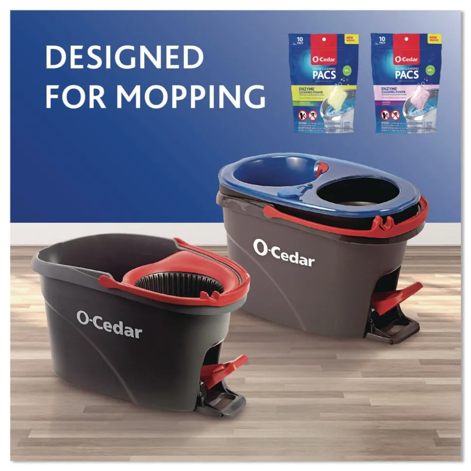 Take the guesswork out of cleaning your floors with the convenient and perfectly portioned O-Cedar PACS. Mixed with 1.6 gal. of water, each PAC has the deep cleaning power to clean every hard-surface floor in your home, including hardwood, tile, vinyl and laminate. Simply drop one O-Cedar PAC into your EasyWring or RinseClean bucket, and you’ll see the bubbles fizz. Then, it’s time to mop! Naturally-derived enzymes dissolve stubborn dirt and grease for a streak-free clean, without any harsh chemicals.