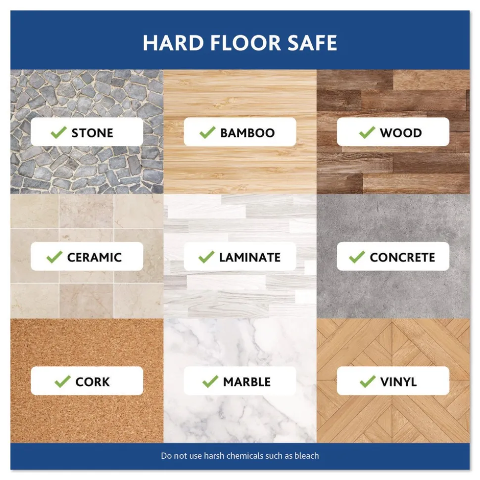 Gentle on all hard surface floors including hardwood, tile, vinyl and laminate