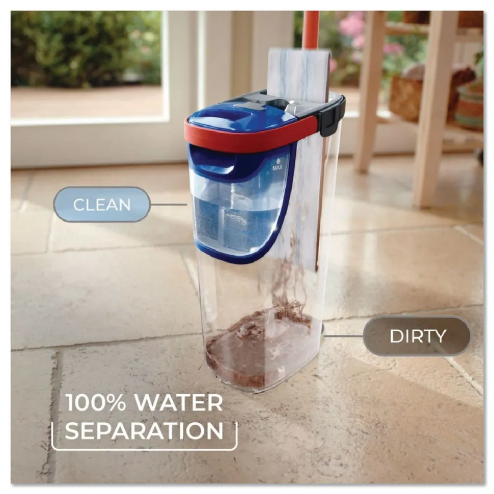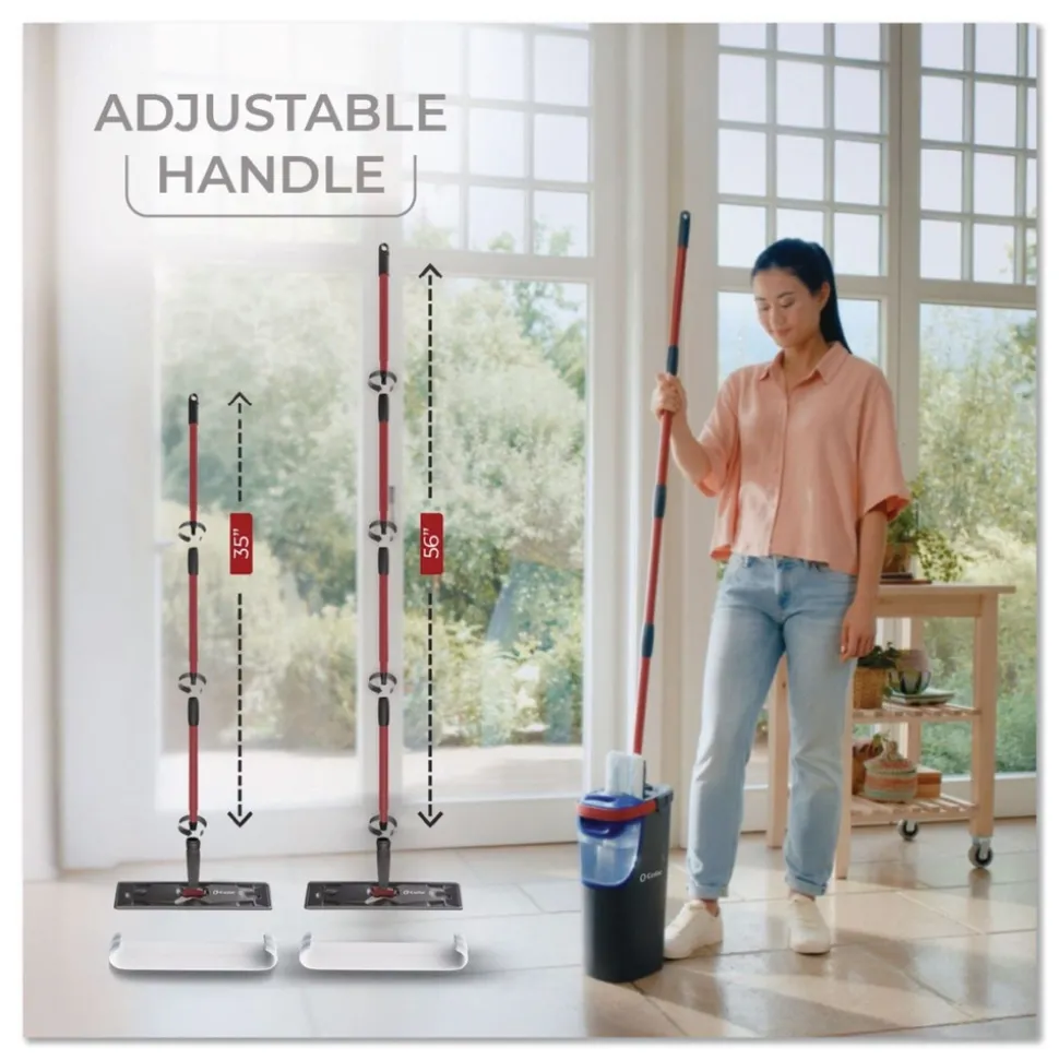 O-Cedar 175765 Up to 56 in. Black/Red Handle 9.25 in. x 4.38 in. White/Blue Microfiber Head H2Pro Flat Mop System