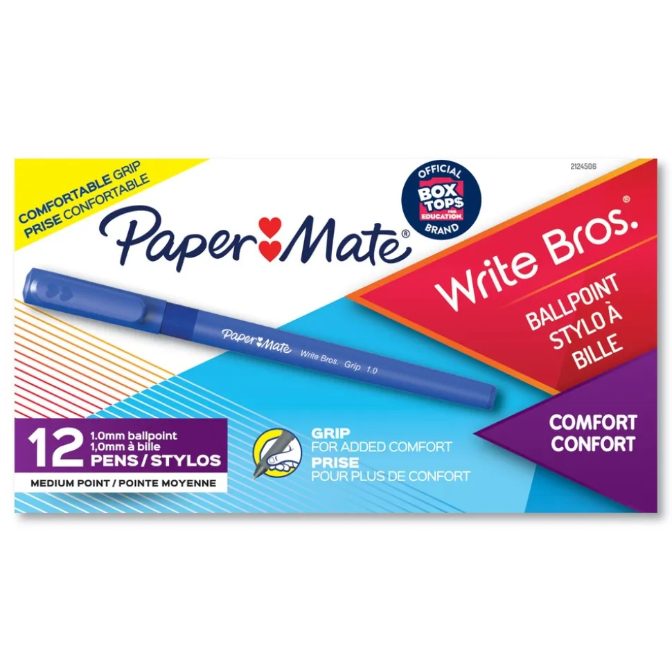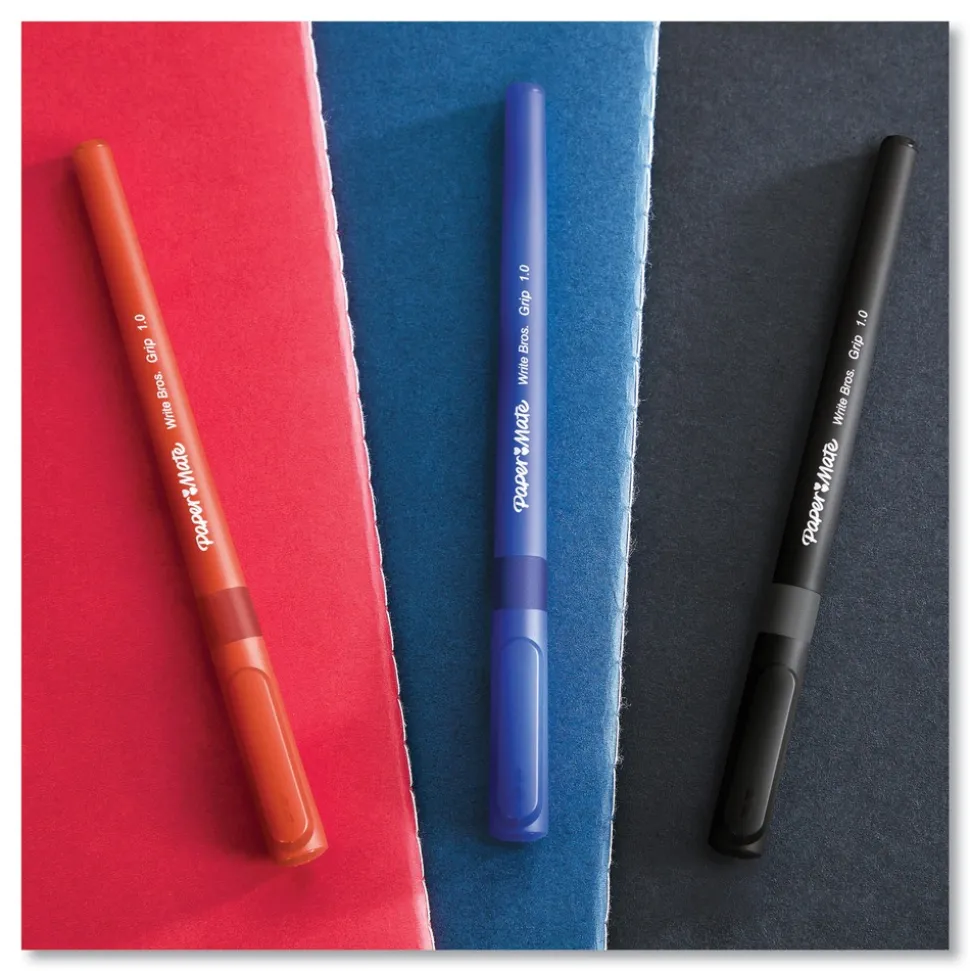 With ultra-low viscosity ink, Paper Mate Write Bros ballpoint pens deliver smooth writing for any occasion. An added comfortable grip and thick barrel brings lets you tackle all-day writing. With a premium look and feel at a great price, these Paper Mate ballpoint pens are perfect for home, school, or office.