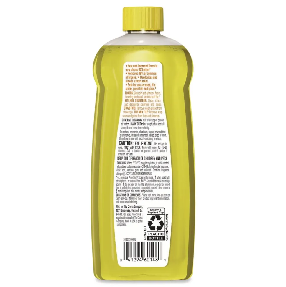 With Pine-Sol Multi-Surface Cleaner you only need one cleaner to fight tough dirt, grease and grime. This 2X concentrated formula cleans 5X better than the previous Pine-Sol Scented Formula. Gives you 5X cleaning action as it deodorizes, cuts through grease, removes grime, tackles dirt and removes 99% of allergens, all while leaving a fresh scent. Cleans (almost) anything: Pine-Sol is suitable for use on sealed wood, tile, stone, porcelain, glass and more when used as directed. Do not use on marble, aluminum, copper or wood that is unfinished, unsealed, unpainted, waxed, oiled or worn.