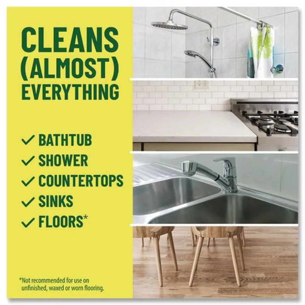 Use to clean countertops, sinks, garbage disposals, floors, sealed wood surfaces, furniture, walls, doorknobs, showers, tubs, toilets, exterior surfaces and more.