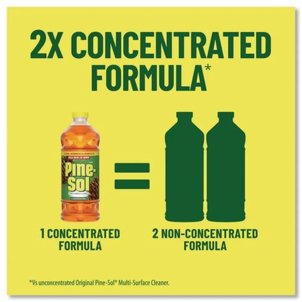 With Pine-Sol Multi-Surface Cleaner Disinfectant Concentrated, you only need one cleaner to fight tough dirt, grease and grime. This improved 2X concentrated formula lasts 2X longer than the previous Pine-Sol Pine formula. EPA registered to kill 99% of germs, Pine-Sol gives you 5X cleaning action as it deodorizes, cuts through grease, removes grime, tackles dirt and removes 99% of allergens, all while leaving a classic scent. One bottle does it all. Pine-Sol is suitable for use on sealed wood, tile, stone, porcelain, glass and more when used as directed. Do not use on marble, aluminum, copper or wood that is unfinished, unsealed, unpainted, waxed, oiled or worn.