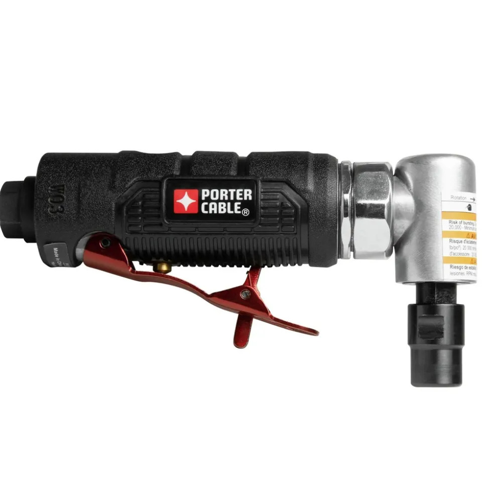 The Porter Cable Right Angle Die Grinder is perfect for grinding, deburring, smoothing, sharpening and honing. The soft touch grip allows for a firm hold and reduced vibration. Grinder is small and lightweight with easy one-hand operation.