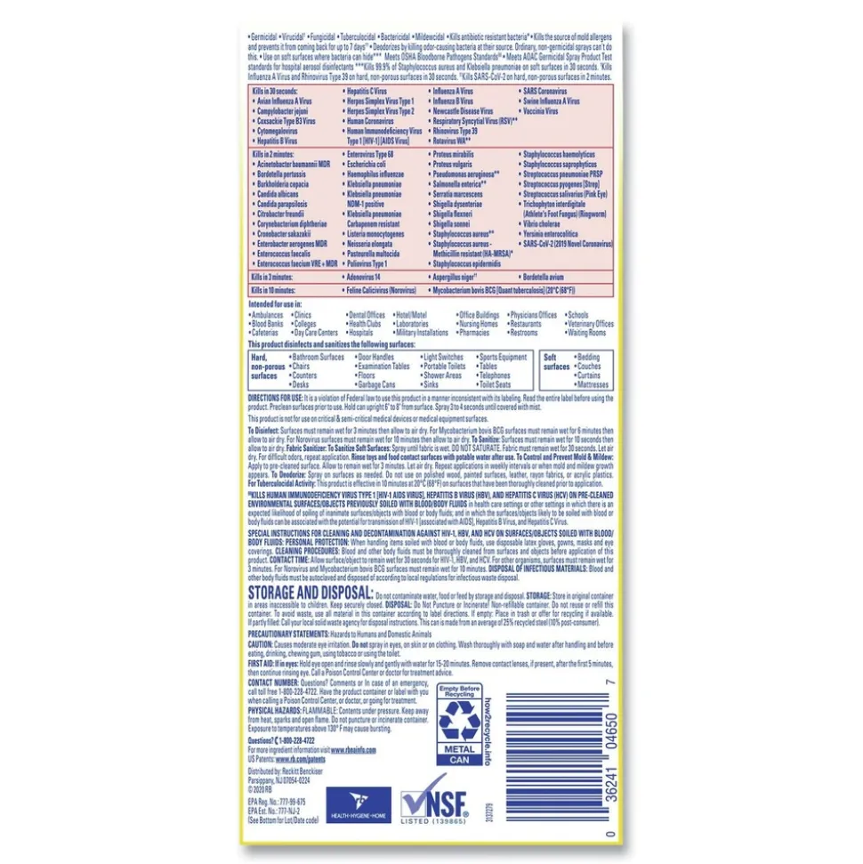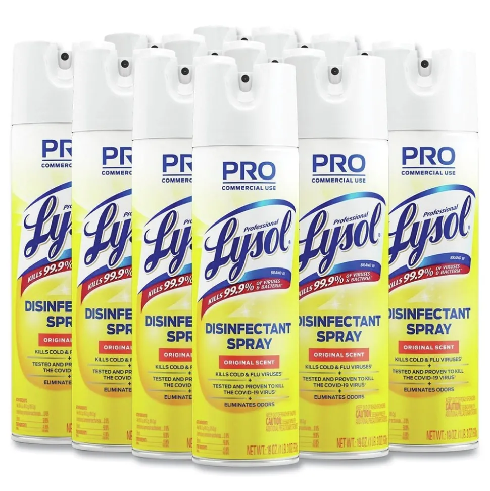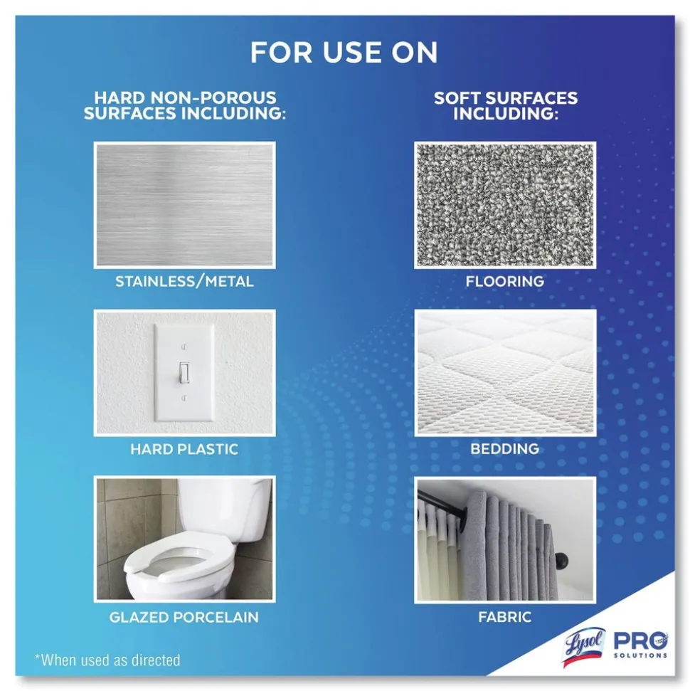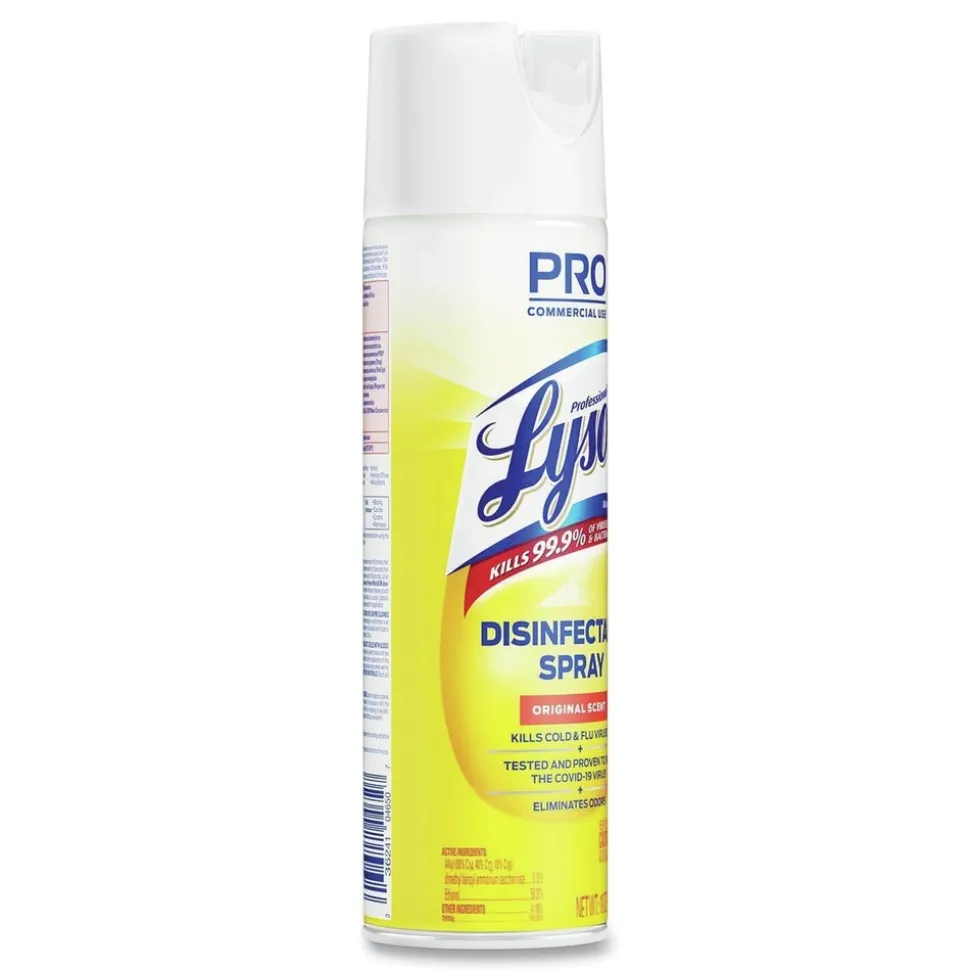 Boost customer confidence with Lysol Professional Disinfectant Spray that’s safe to use on hard and soft surfaces. Lysol kills 99.9% of viruses and bacteria, as well as cold and flu viruses when used as directed. Help protect high-traffic areas and high-touch surfaces, including desks, bathrooms, doorknobs, and railings. Deliver hospital-type disinfection into soft surfaces, including upholstery, curtains, sofas, mattresses, and cushions. Meet customer and staff expectations around disinfection. Simply spray and let air dry.