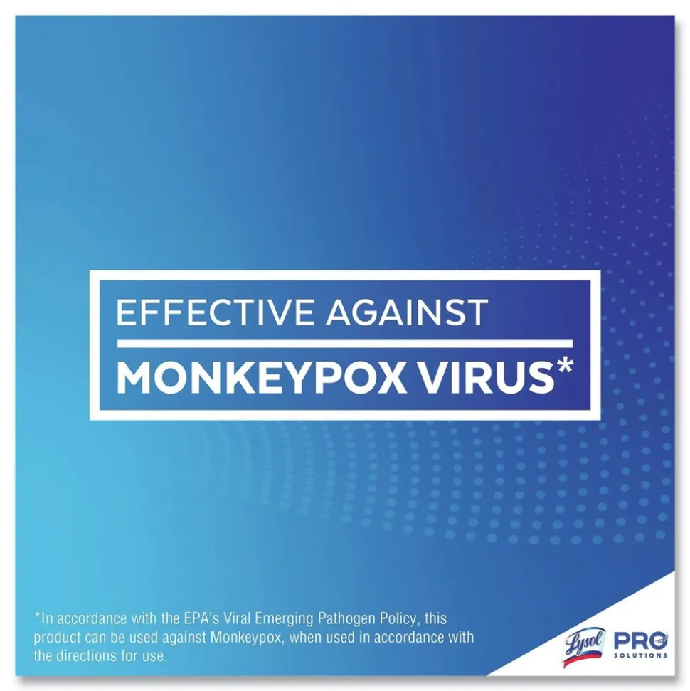 This product has demonstrated effectiveness against viruses similar to Monkeypox on hard, non-porous surfaces and in accordance with the EPA’s Viral Emerging Pathogen Policy, can be used against Monkeypox, when used in accordance with the directions for use
