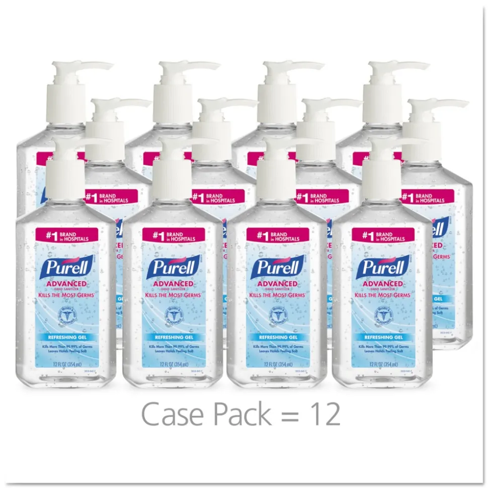 PURELL 3659-12 Advanced 12 oz. Refreshing Gel Hand Sanitizer Pump Bottle – Clean Scent (12/Carton)