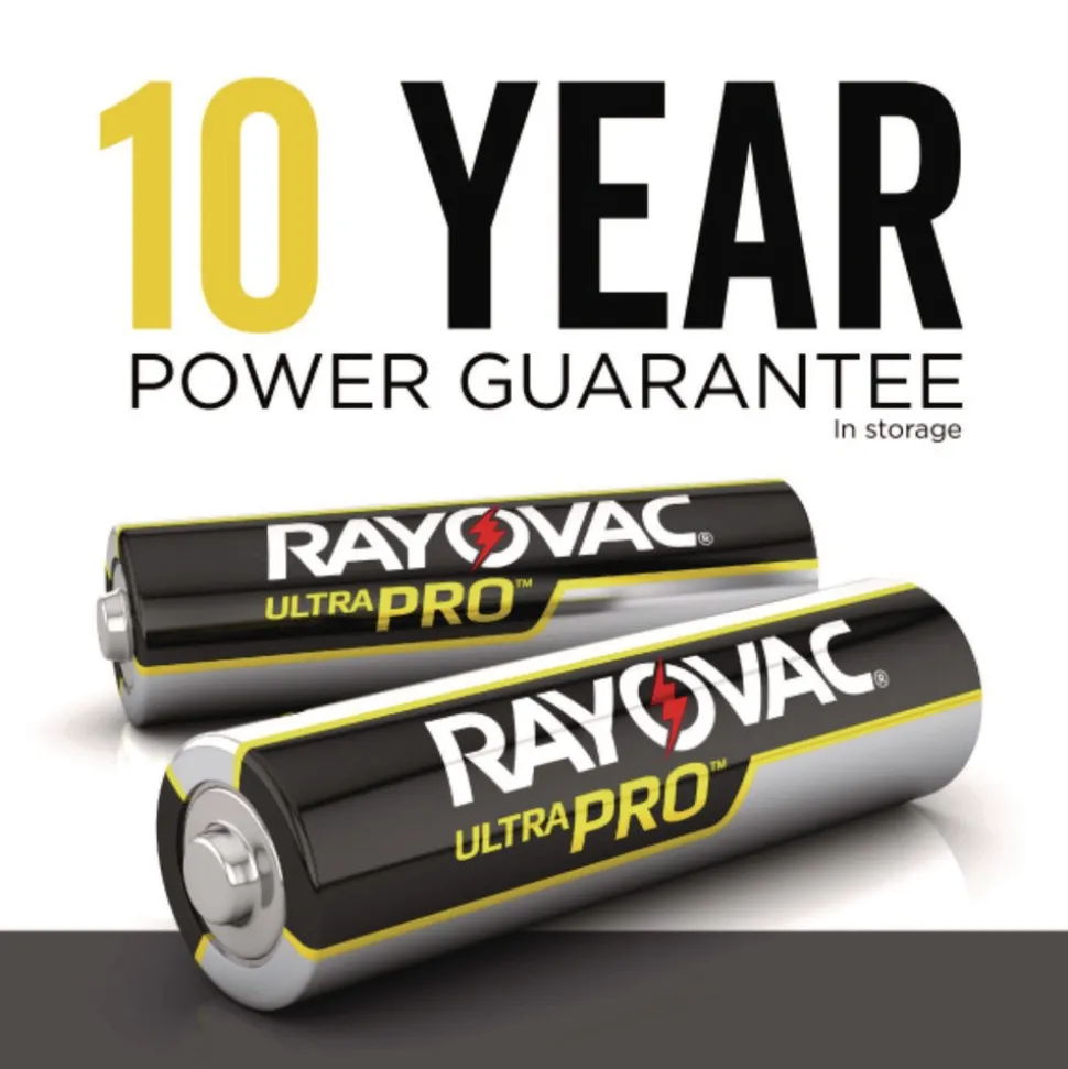 Ultra Pro alkaline batteries are long lasting and perform in high use equipment like smoke detectors, flashlights and wireless devices. The packaging is easy to open and helps protect and organize the batteries so they’re ready when you need them. Plus, with a 10-year shelf life/5-year shelf life for 9V, you can depend on Rayovac Ultra Pro for the long haul. Rayovac Ultra Pro alkaline batteries deliver long lasting power and savings, with packaging specifically designed for today’s industrial customer. They are engineered for professional use to deliver dependable performance.