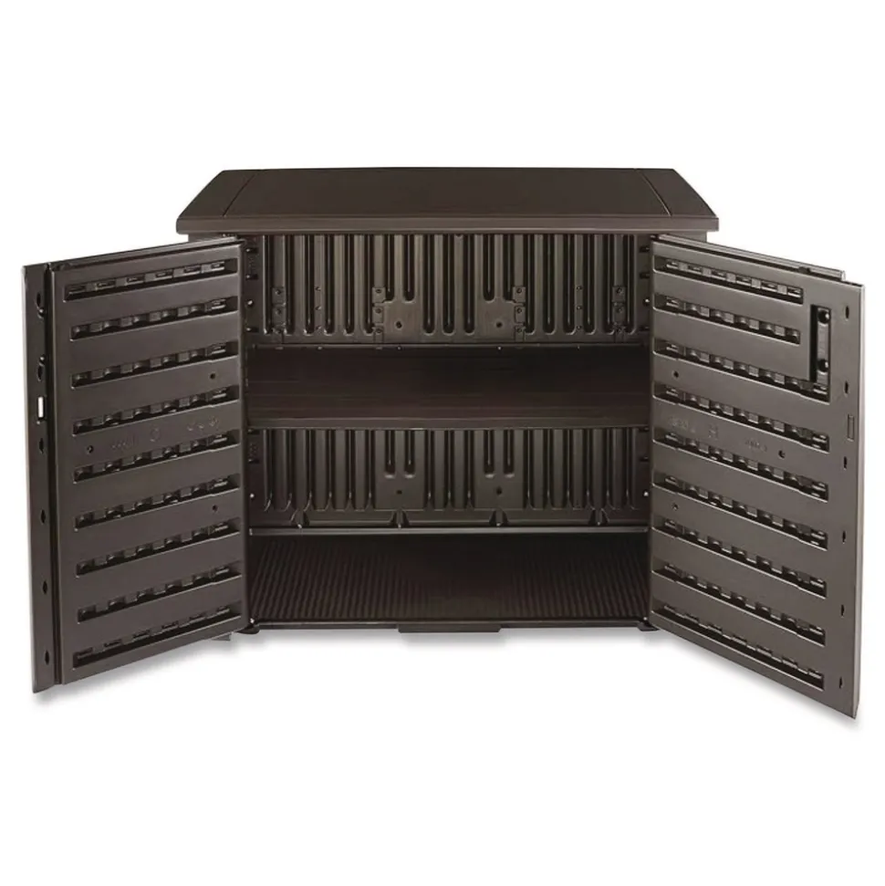 Increase your outdoor storage while adding a stylish touch to your patio with the Rubbermaid Patio Series storage cabinet. This cabinet offers an extra-large outdoor storage space and is made of weather-resistant material to protect stored items from sun, rain and snow.
