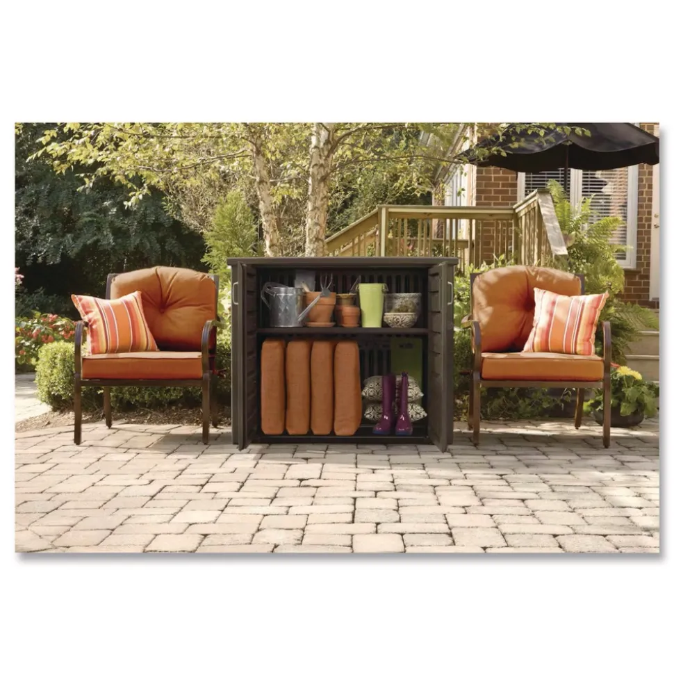 The extra-large storage space inside holds seat cushions, garden supplies and grilling accessories