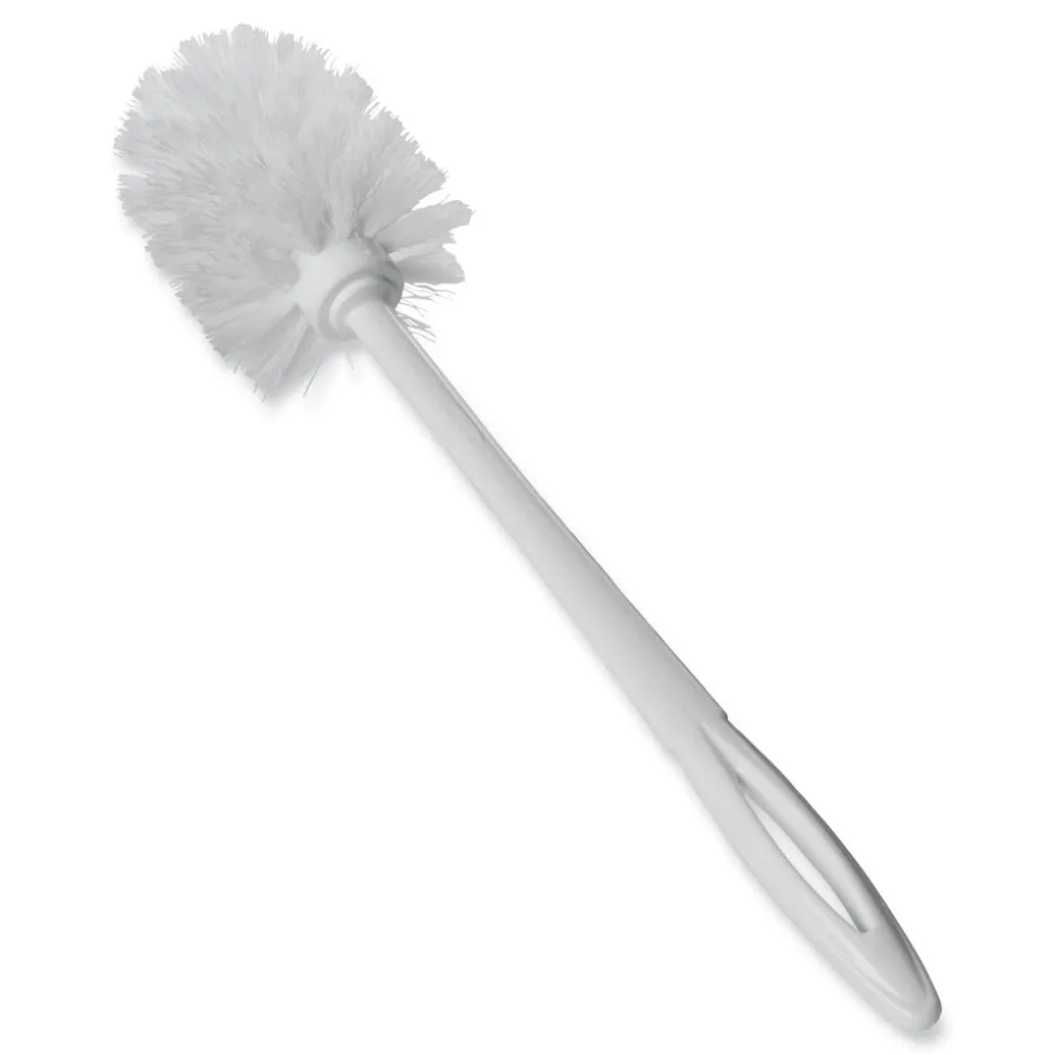 The Rubbermaid Commercial Products Toilet Brush with Plastic Handle is ideal for commercial, medical, and industrial applications. The sturdy plastic toilet bowl brush handle is suited for moderate to heavy cleaning. A hole near the end of the toilet brush handle allows the toilet cleaning brush to be hung for storage. The white polypropylene bristles are resistant to stains, odors, bacteria, fungi, and wear.