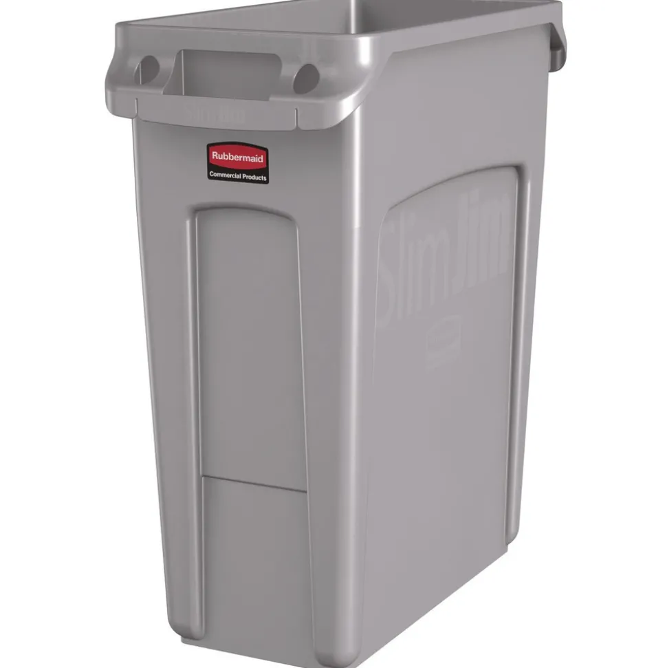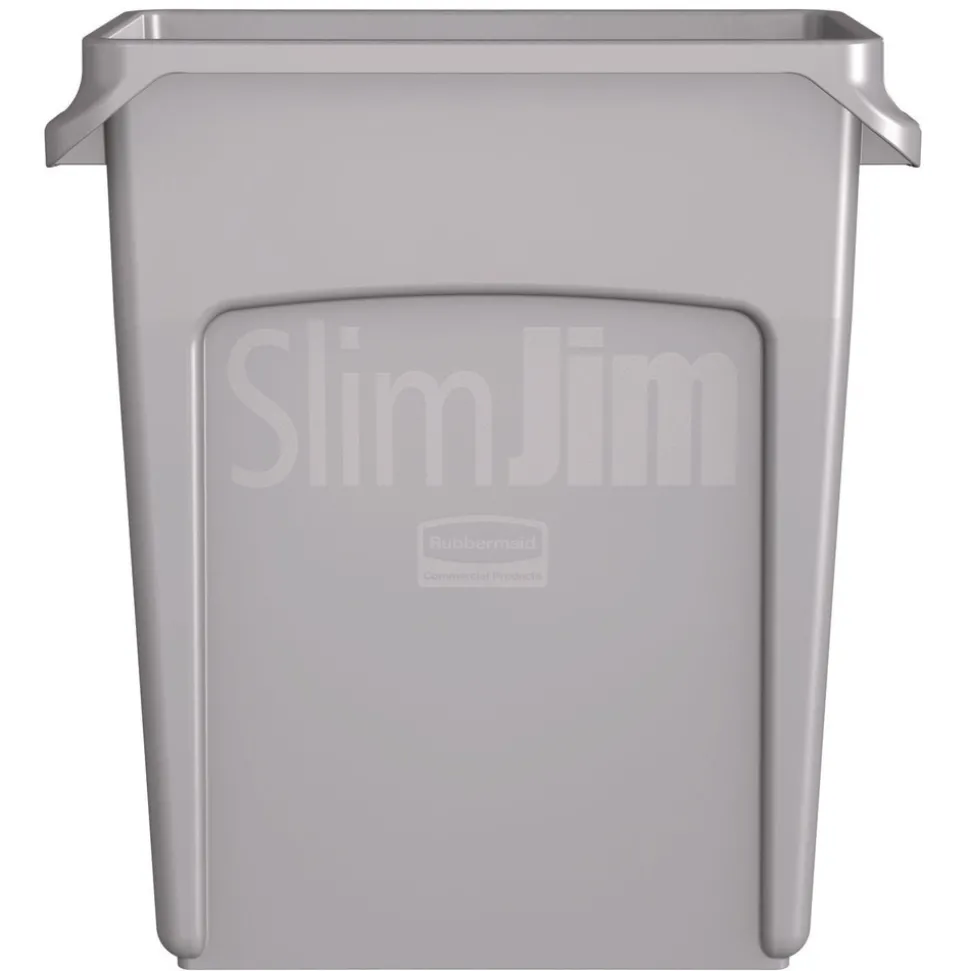 Rubbermaid Commercial 1971258 15.875 Gallon Rectangular Plastic Slim Jim Waste Container with handles – Light Gray