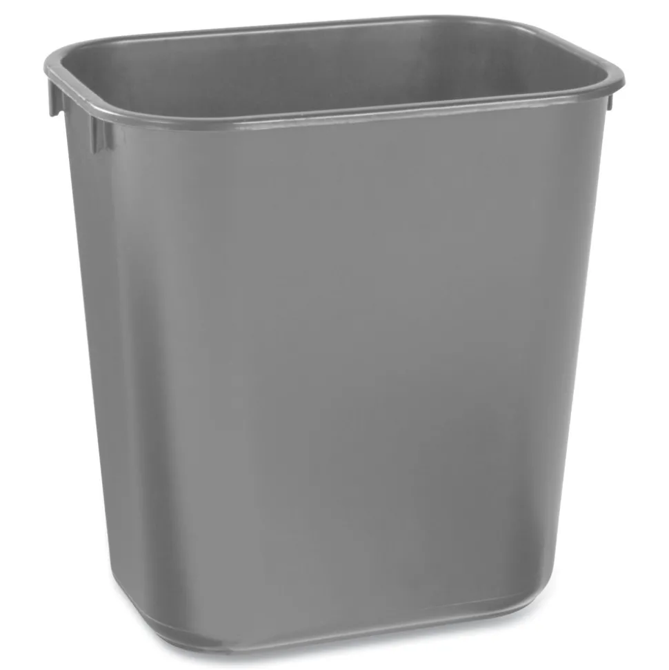 The Rubbermaid Commercial Deskside Trash Can is space-efficient and economical. This waste basket fits under a standard desk height, even when the swing top is fully extended. Its all-plastic construction won’t chip, rust, or dent. These waste baskets feature rolled rims to add strength, and are easy-to-clean.