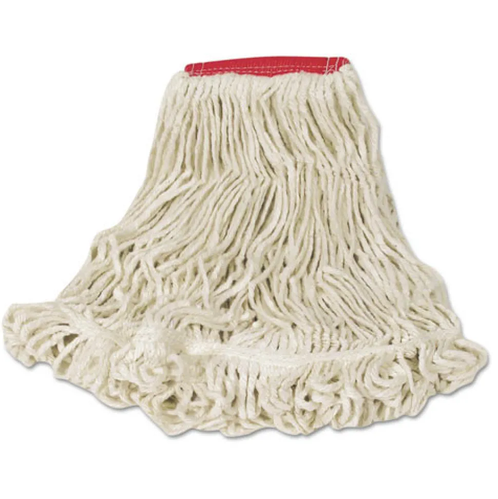 The Rubbermaid Commercial Super Stitch Blend Mop has a blend of 4-ply cotton and synthetic fibers for higher absorbency and more launderings than cotton mops, and has looped ends and a yarn tailband to reduce tangling and fraying for improved performance. The synthetic mesh headband resists moisture retention so the mop head can dry between uses. Green cleaning equipment is recognized in the industry as color-coded for use in food service areas as part of a zone isolation system to help minimize cross-contamination. These mop heads are suitable for use in commercial and industrial applications.