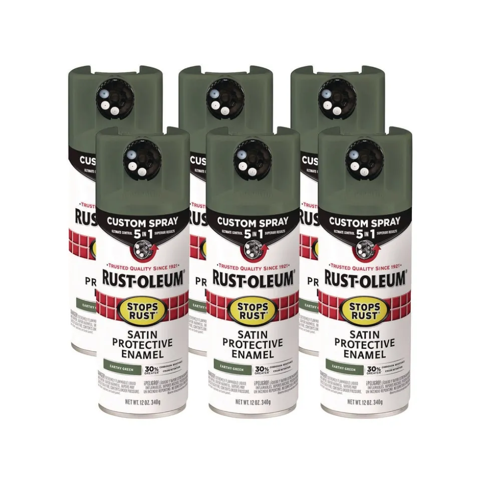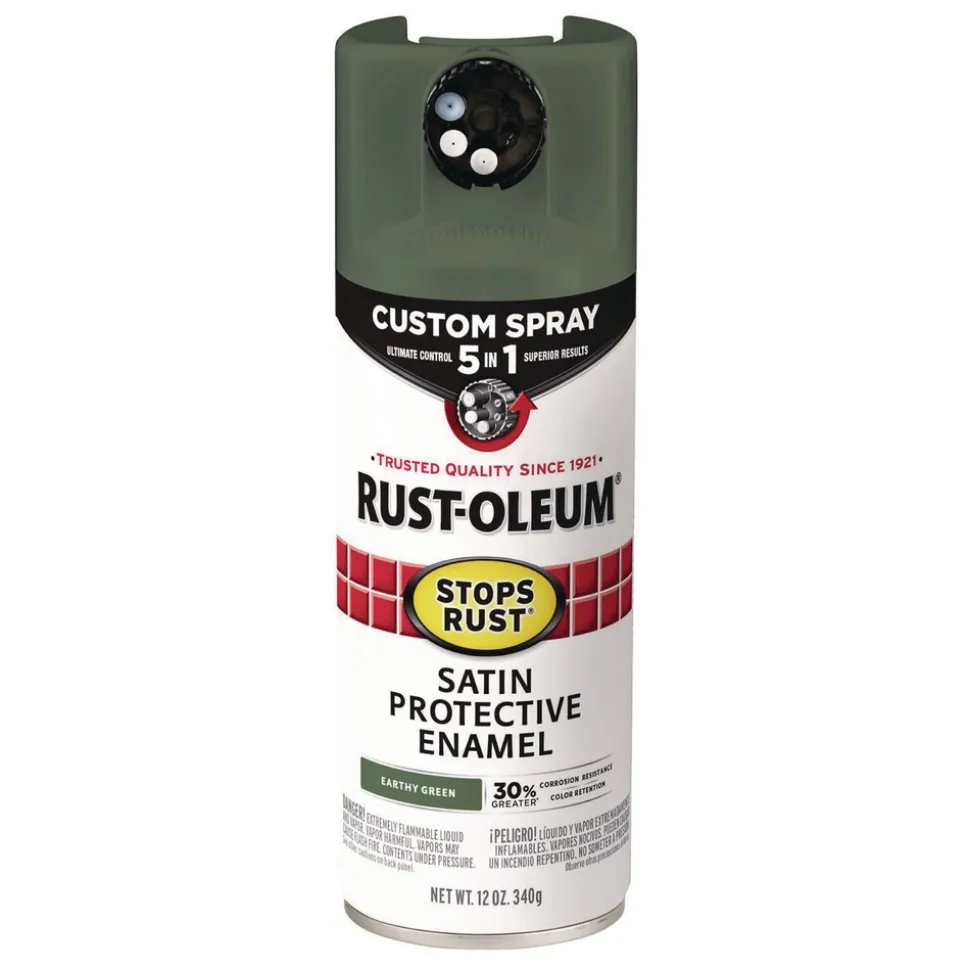 Rust-Oleum 383421 Stops Rust 5-in-1 Spray Paint, Satin Earthy Green, 12 oz Aerosol Can, 6/Carton