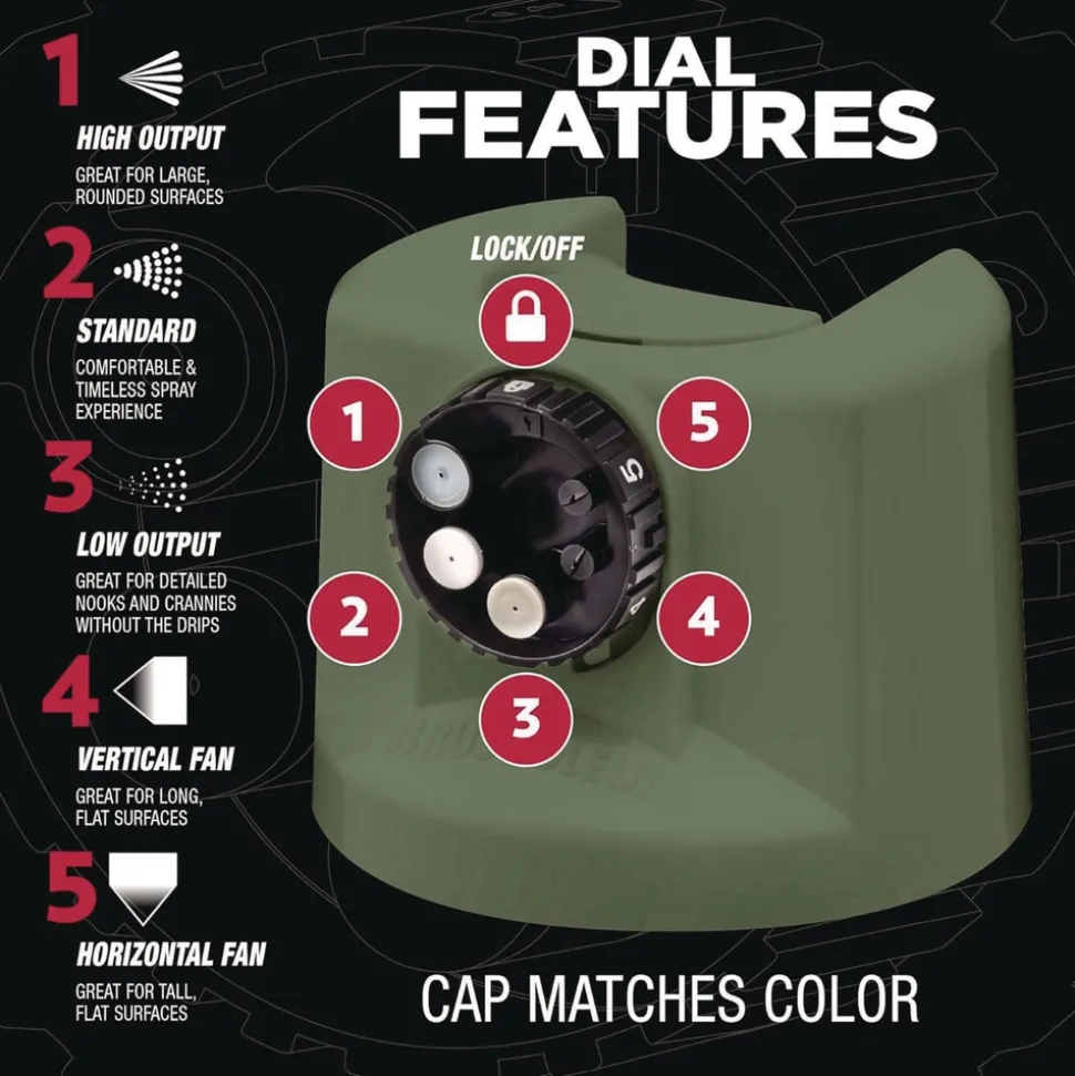 Rust-Oleum Stops Rust Custom Spray 5-in-1 allows you to choose between five different spray patterns for ultimate control and confidence over your next project. The advanced Stops Rust formula provides 30% greater corrosion resistance and color retention compared to original matching Stops Rust colors with standard tip. Ideal for ferrous, nonferrous metal and wood surfaces. Not for use on galvanized metal.