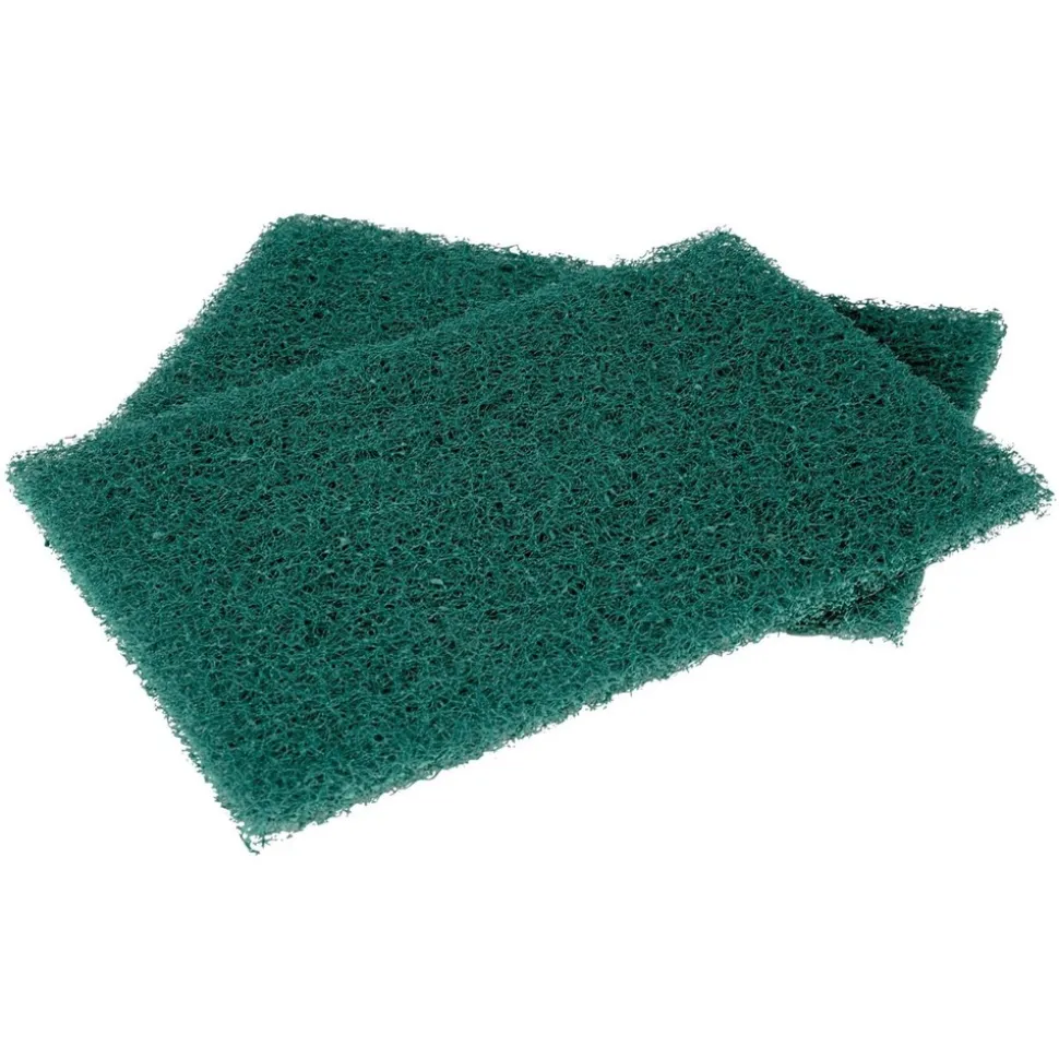 Tough synthetic fibers, abrasives and resins clean grills and ovens. Removes baked-on foods from pots and pans, replacing scrapers, steel wool and metal sponges. Also scrubs floors, and cleans kitchens and cooking equipment. Can be used wet or dry.