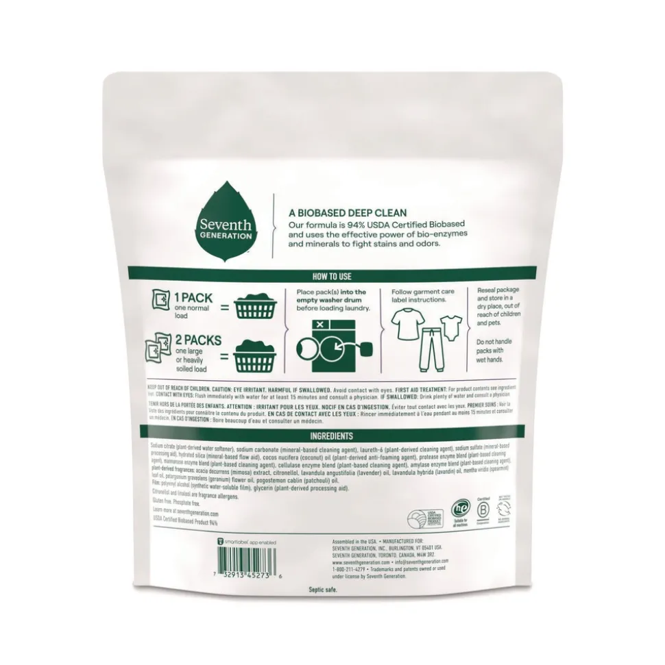 Seventh Generation 62692700 Natural Laundry Detergent Powder Packs – Lavender Scent (8/Carton)