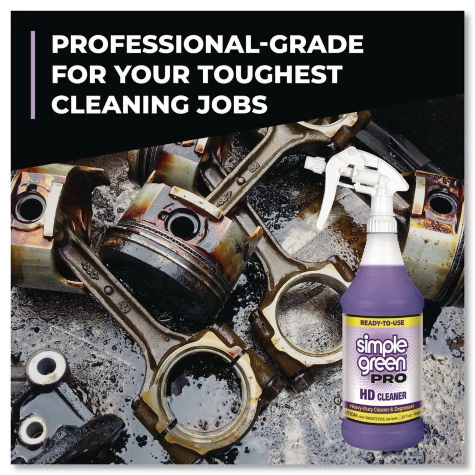 Simple Green Pro HD Heavy-Duty Cleaner is a ready-to-use, professional grade cleaner and degreaser that breaks down tough grease, eliminates grime and removes stains on a wide variety of surfaces including engines, car exteriors, appliances, machinery floors, walls and more. It is non-corrosive to metals, non-degrading to plastics and clean rinsing. The biodegradable liquid biodegrades 94% within 28 days after disposal into a typical sanitary sewer of septic system, providing a safer alternative to solvents and other harsh cleaning chemicals without sacrificing performance.