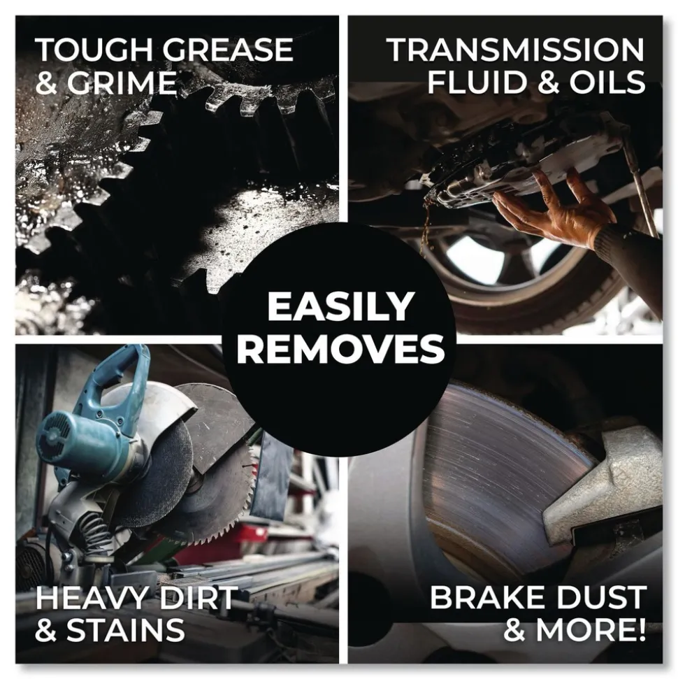Cleans brake dust, transmission fluids, oil and other automotive grime