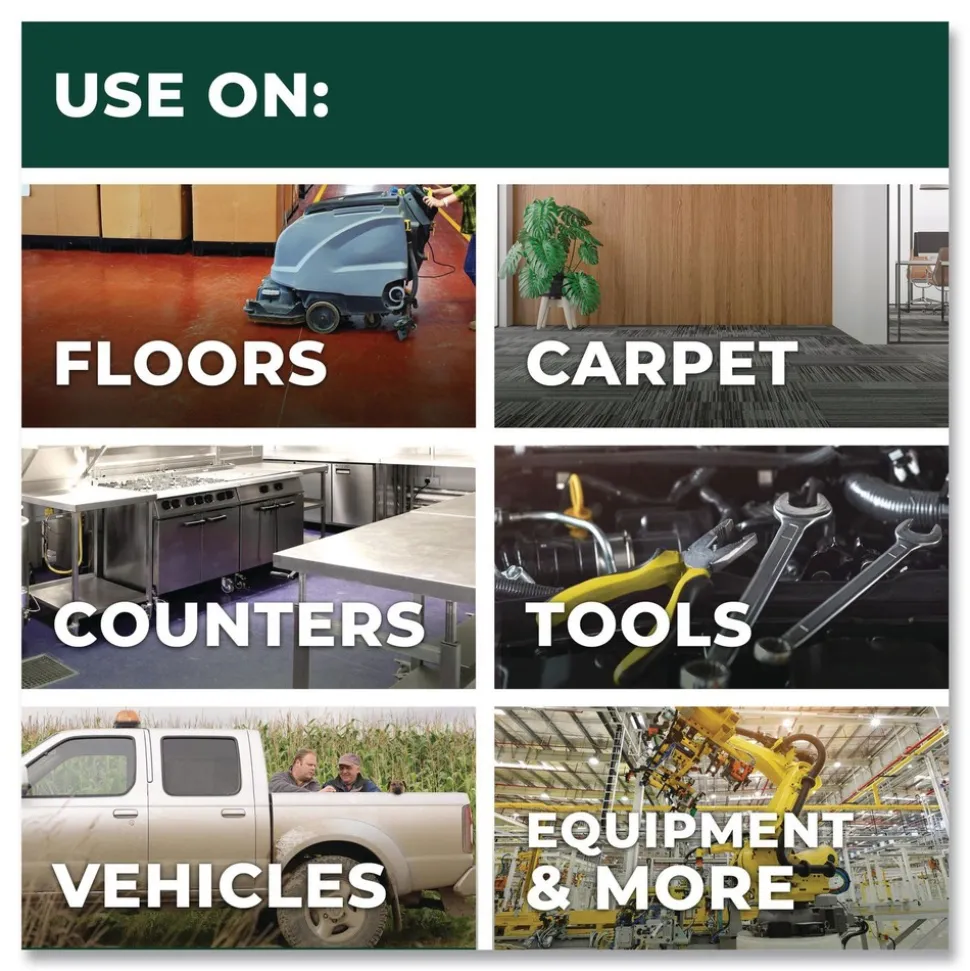 Simple Green Industrial Cleaner and Degreaser provides a safer alternative to caustic or acidic cleaners, bleaches and solvents. The trusted formula is non-abrasive and recognized by the U.S. EPA’s Safer Choice Program. Designed to be used on all washable surfaces, Simple Green powers away heavy dirt, grease, food residue and stains from countertops, sinks, tile, carpet, flooring, upholstery and more. The cost-effective concentrate can be used manually or in cleaning equipment such as such as floor scrubbers, dip tanks, carpet extractors, pressure washers, steam extractors and foamers. Easily cuts through tough grease, oils, cutting fluids and built-up grime on equipment, engines, machinery, vehicles and manufactured parts making it ideal for a wide range of industries including janitorial, manufacturing, MRO, food processing, mining, automotive, transportation and engineering.