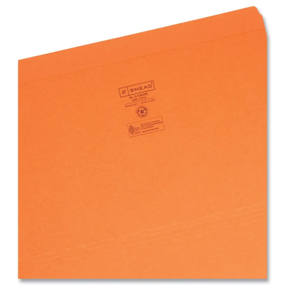 Smead 17510 0.75 in. Expansion Straight Tabs Legal Size Reinforced Top Tab Colored File Folders – Orange (100/Box)