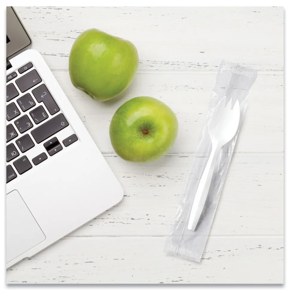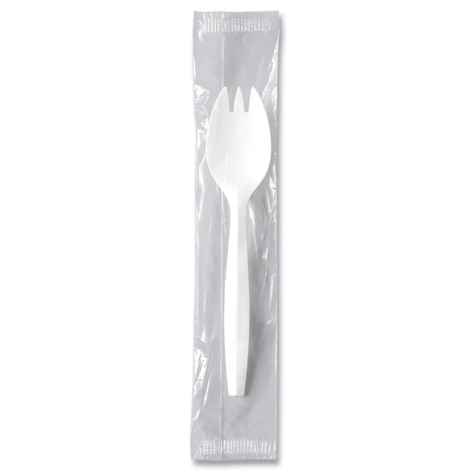 (1000/Carton) Individually Wrapped Regal Mediumweight Plastic Cutlery Spork – White – MOW60007