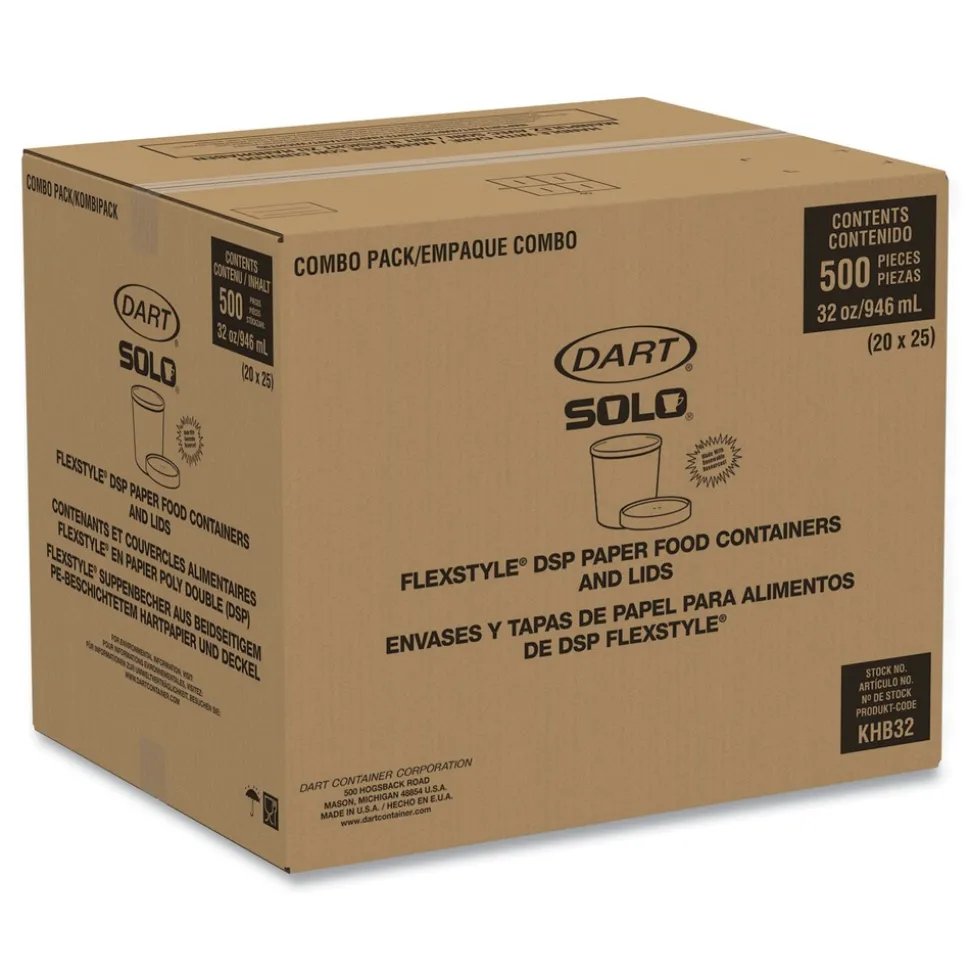 SOLO KHB32A-J8000 32 oz Flexstyle Double Poly Paper Food Combo Packs – Symphony (500/Carton)