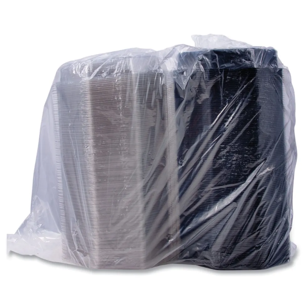 (100/Carton) OctaView 9.57 in. x 9.2 in. x 3.2 in. 42 oz. Plastic Hinged-Lid Cold Food Containers – Black/Clear – 864056AP94