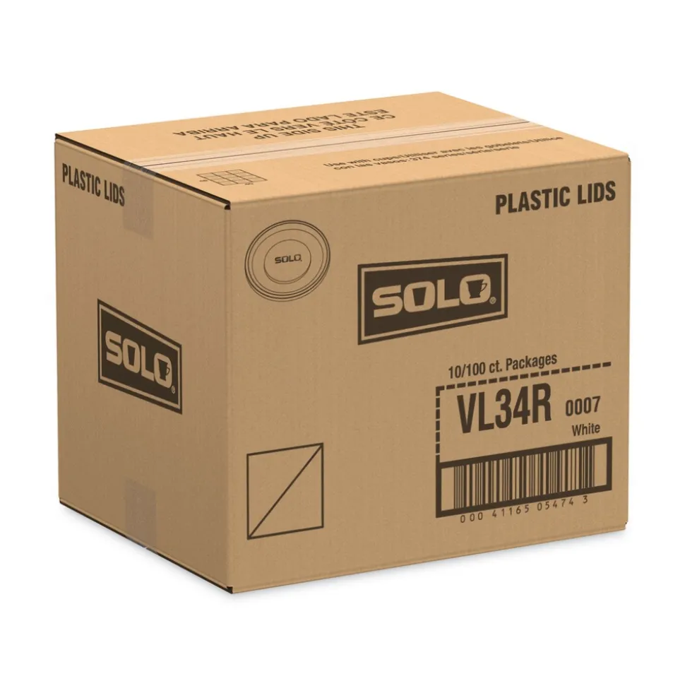 SOLO VL34R-0007 Polystyrene Vented Hot Cup Lids Fits 4 oz Cups – White (100/Pack, 10 Packs/Carton)