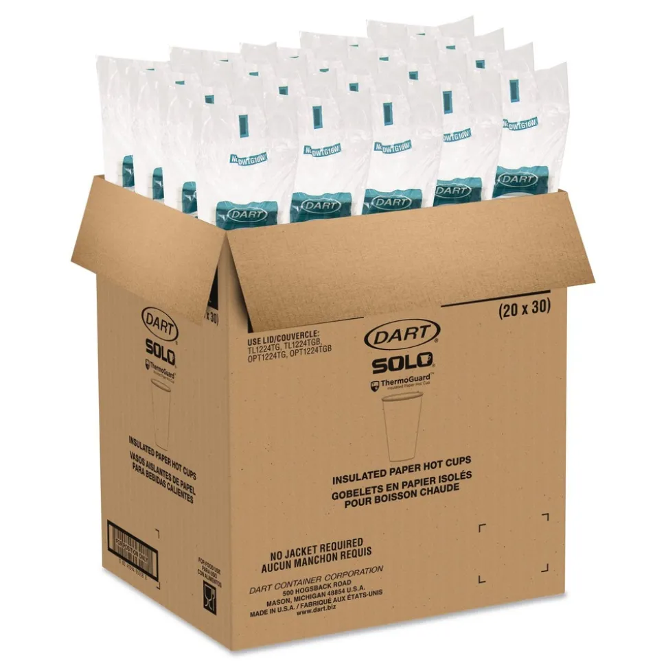 SOLO DWTG16W Thermoguard 16 oz Sustainable Forest Print Insulated Paper Hot Cups – White (600/Carton)
