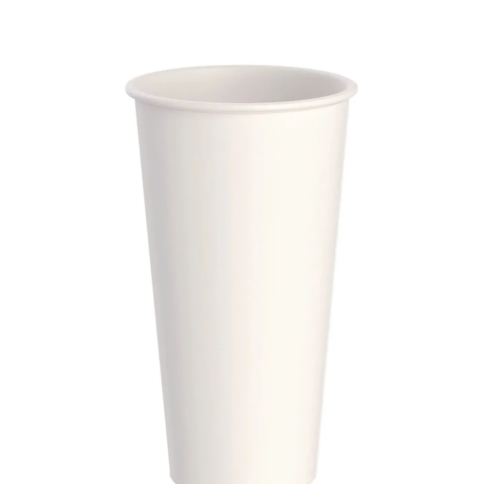 Insulated, double wall paper cup eliminates the need for a sleeve.