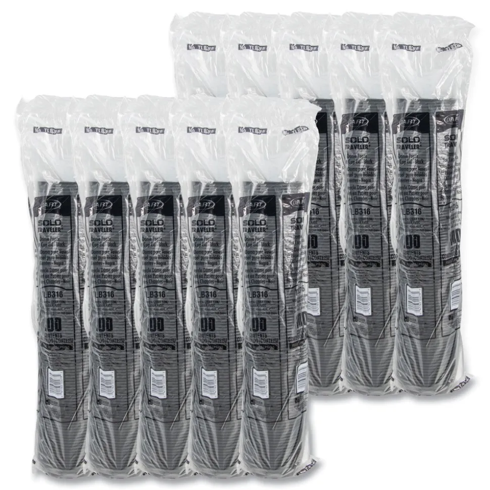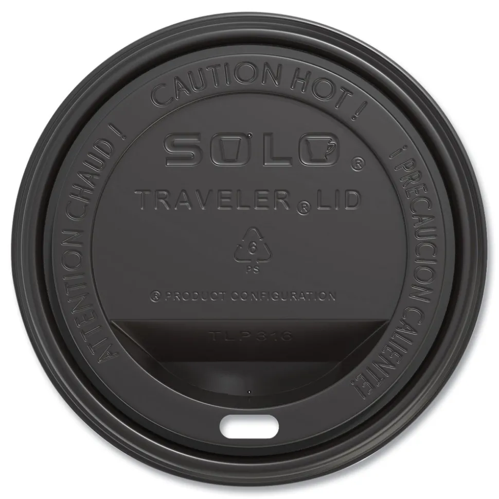 SOLO TLB316-0004 Traveler Cappuccino Style Dome Lid Fits 10 oz. to 24 oz. Cups – Black (1000/Carton)