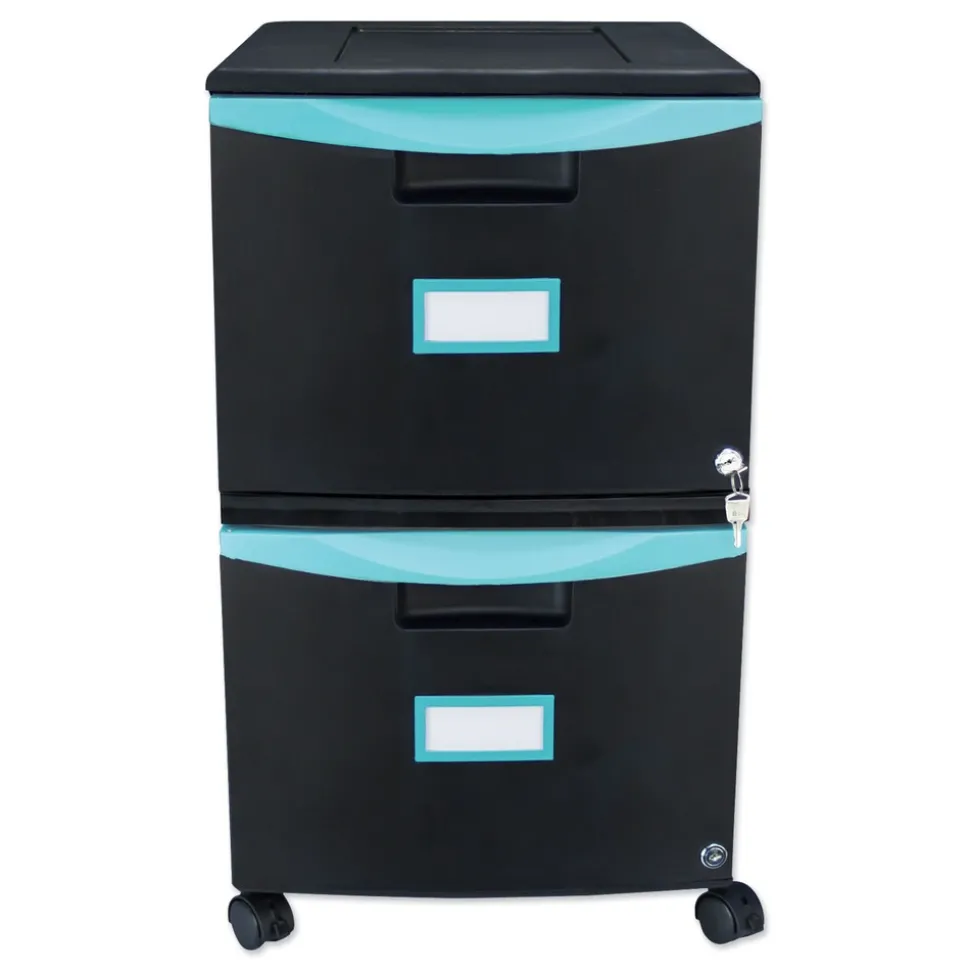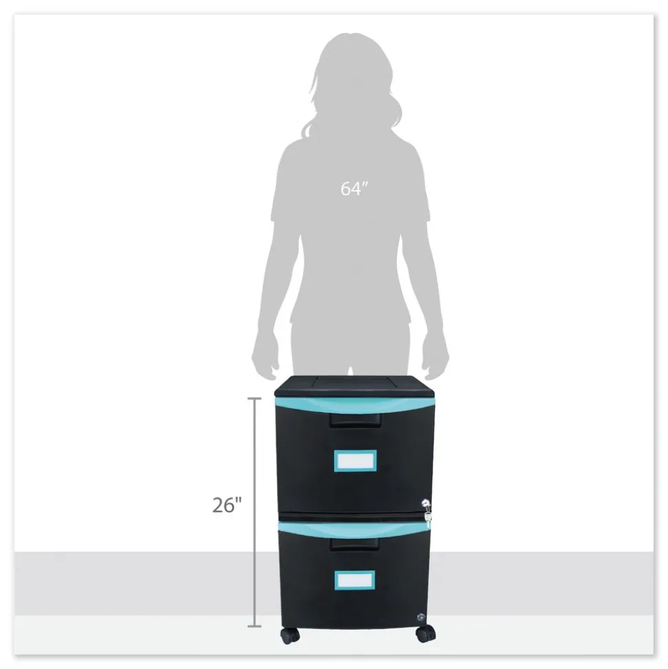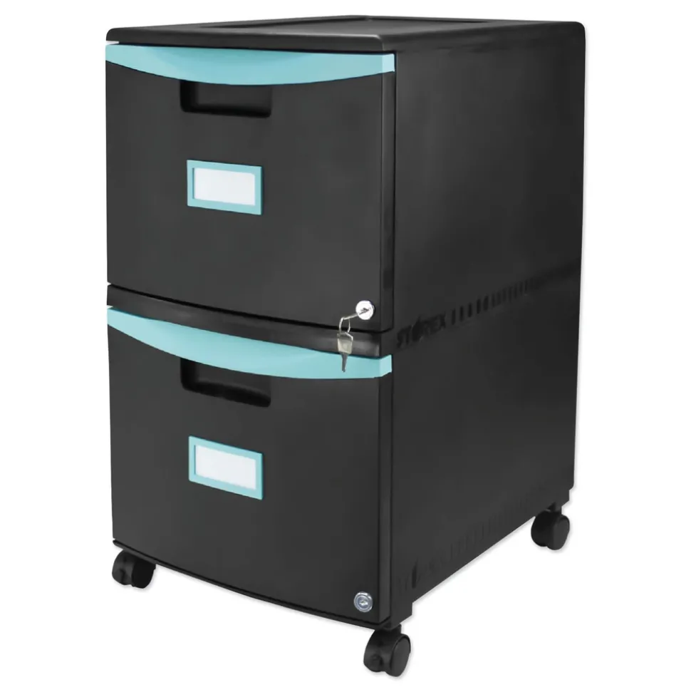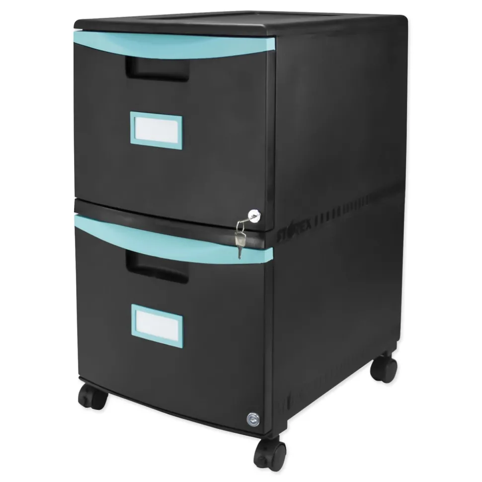 Storex 61315U01C 2 Legal/letter-Size File Drawers 14.75 in. x 18.25 in. x 26 in. Two-Drawer Mobile Filing Cabinet – Black/Teal