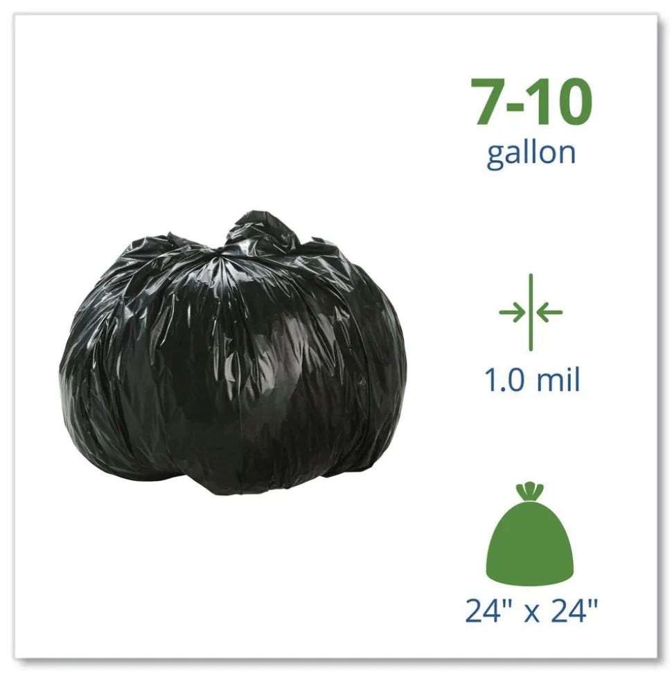 (250/Carton) 24 in. x 24 in. 1 mil. 10 Gallon Total Recycled Content Plastic Trash Bags – Brown/ Black – T2424B10