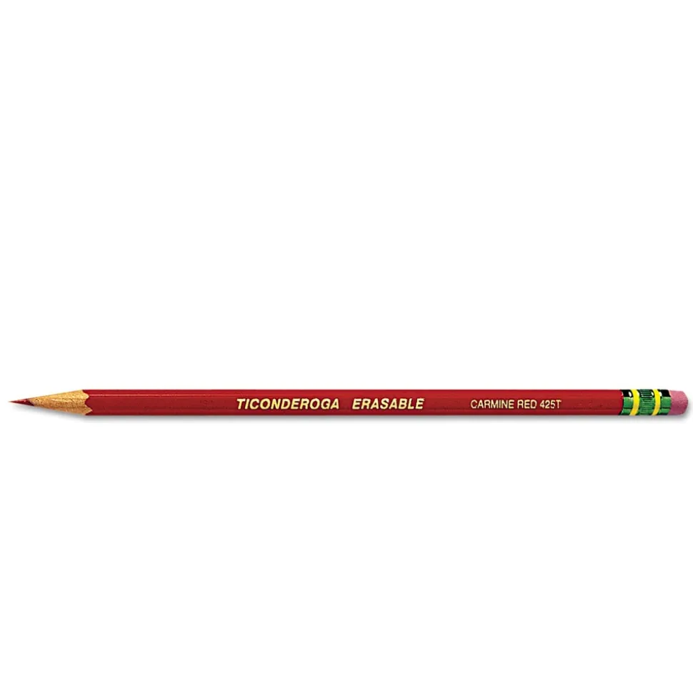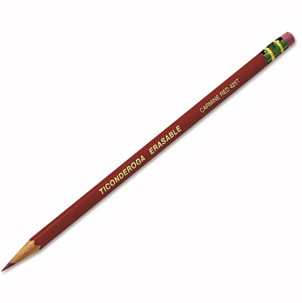 Ticonderoga 142590002 2.6 mm 2B Erasable Colored Pencils – Carmine Red Lead/Carmine Red Barrel (12/Pack)
