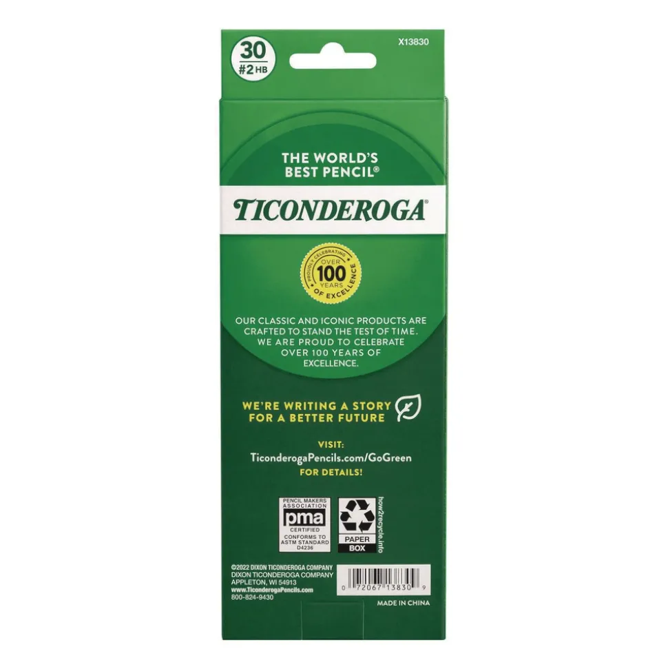 Ticonderoga X13830 HB (No. 2) Pre-Sharpened Pencil – Black Lead/Yellow Barrel (30/Pack)