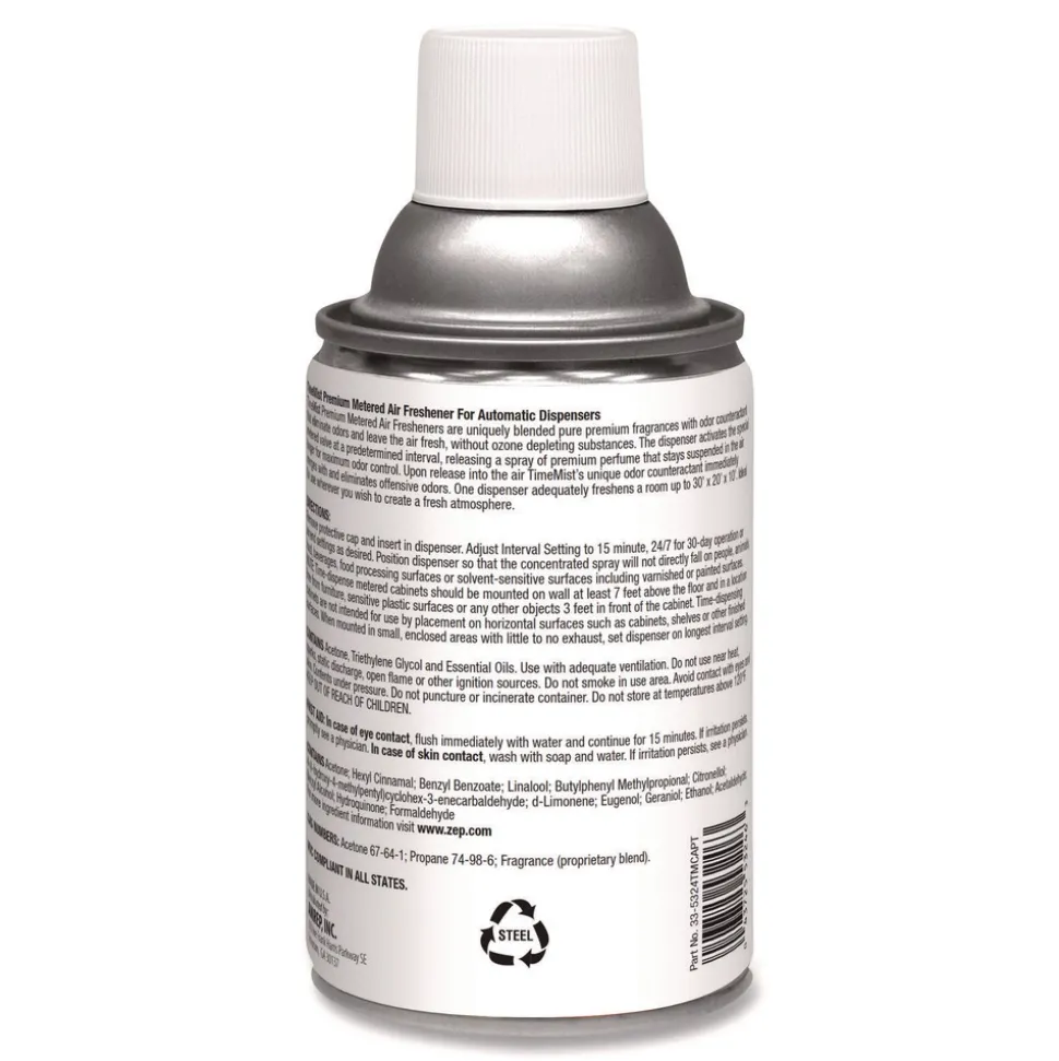 Complex high quality fragrance with essential oils and dual odor counteracts ensuring 30 day long lasting experience. For use with TimeMist Metered Aerosol Dispensers (sold separately).